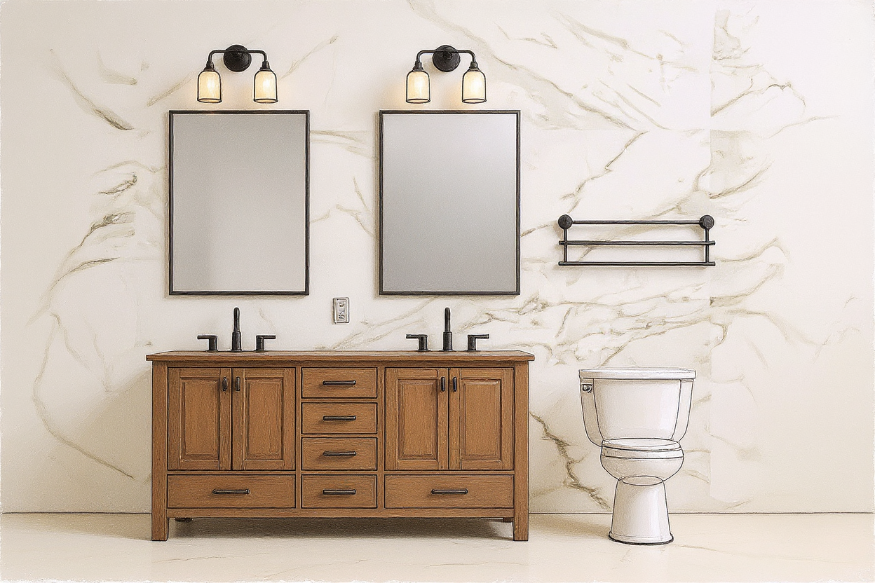 please create a photorealistic render of the provided image of a section of a greenhouse include the white austin stone concrete floor light wood grained cabinets and tables daylight reflections in the glass cmu block wall at the back of the basement