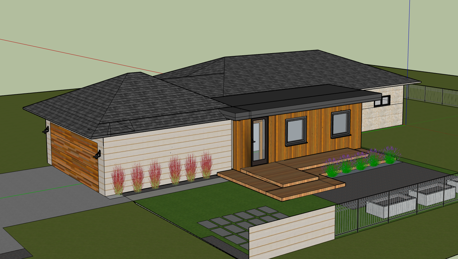render this concept to a realistic looking minimalist single story rambler with warm natural aesthetic