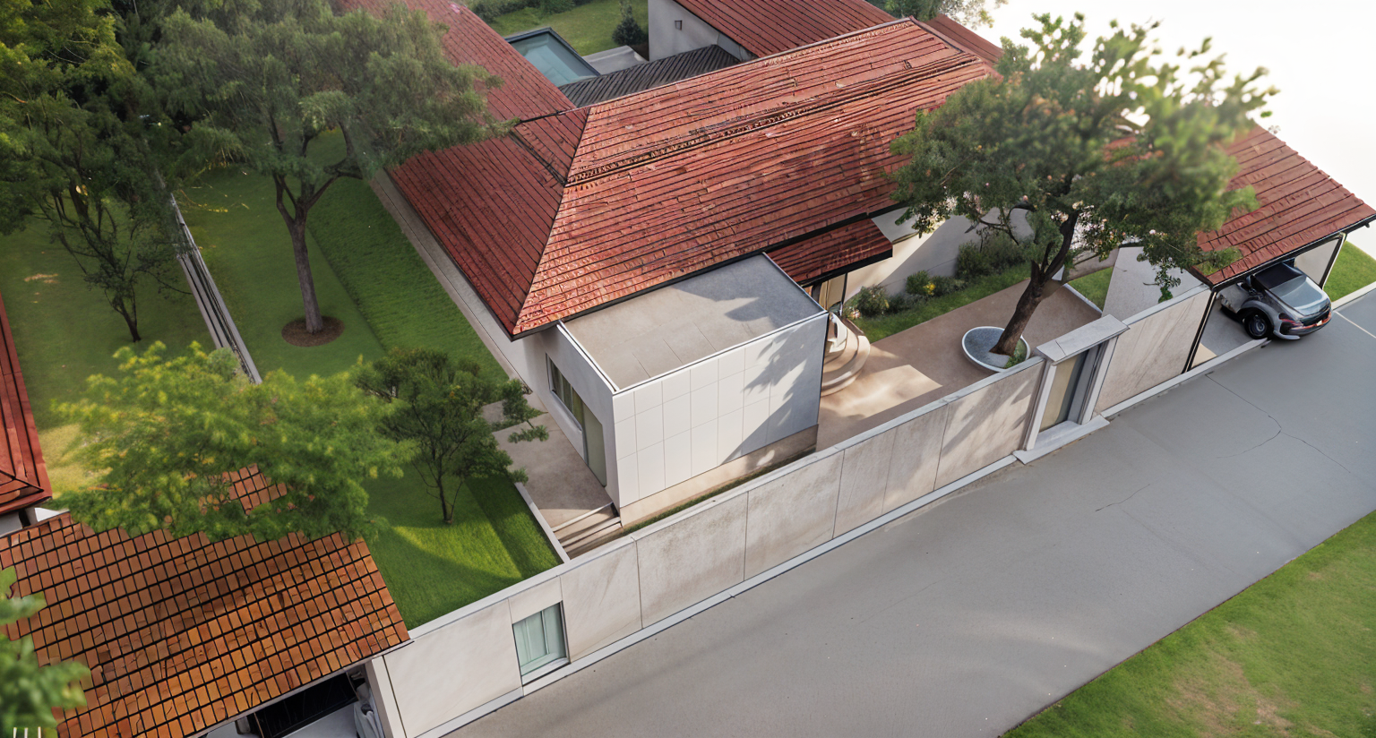 add curtains behind windows replace trees for realistic oak trees