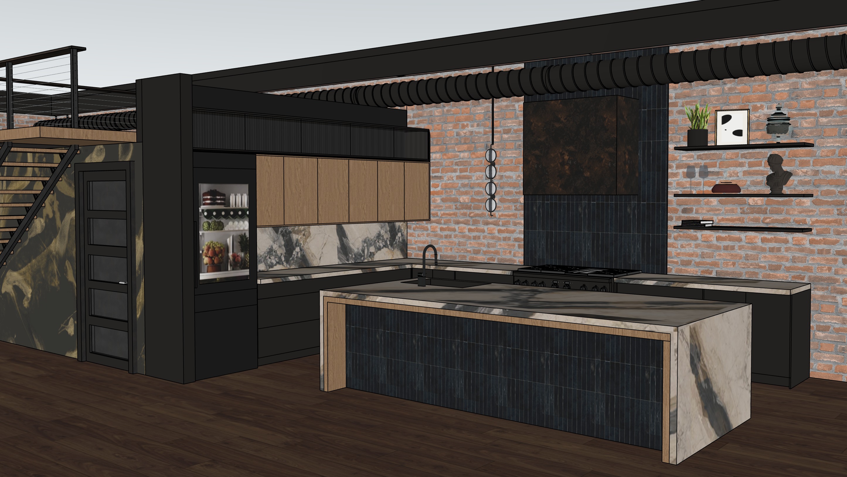 high end realistic magazine quality black open joist ceiling