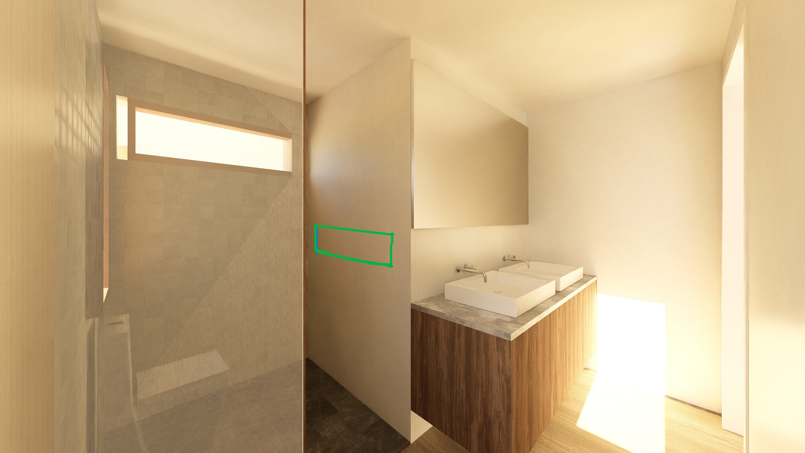 a ade en el rectangulo verde una hornacina metalica en color blanco y a ade elementos de ba o como botes de gel jabon un cepillo
