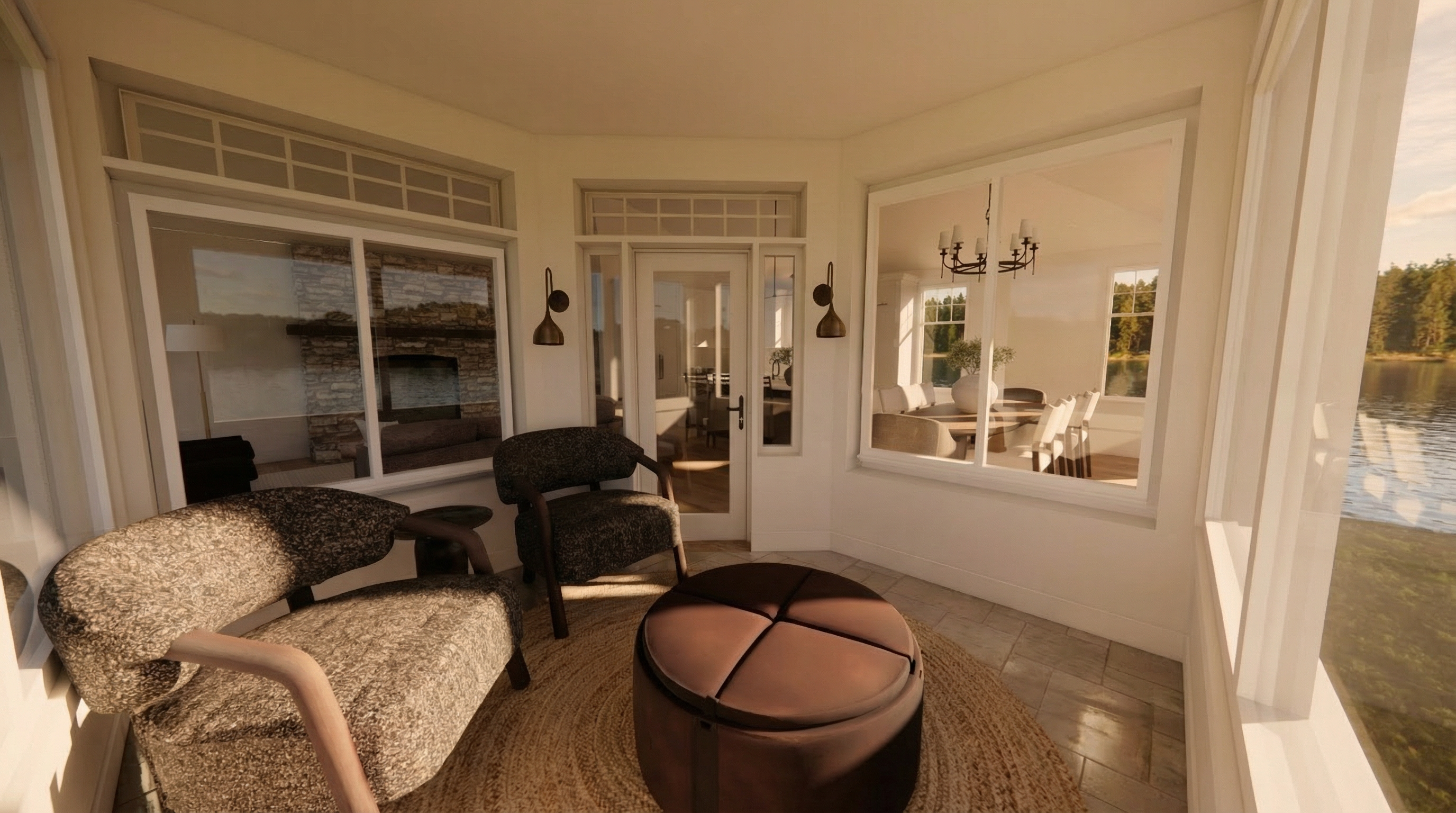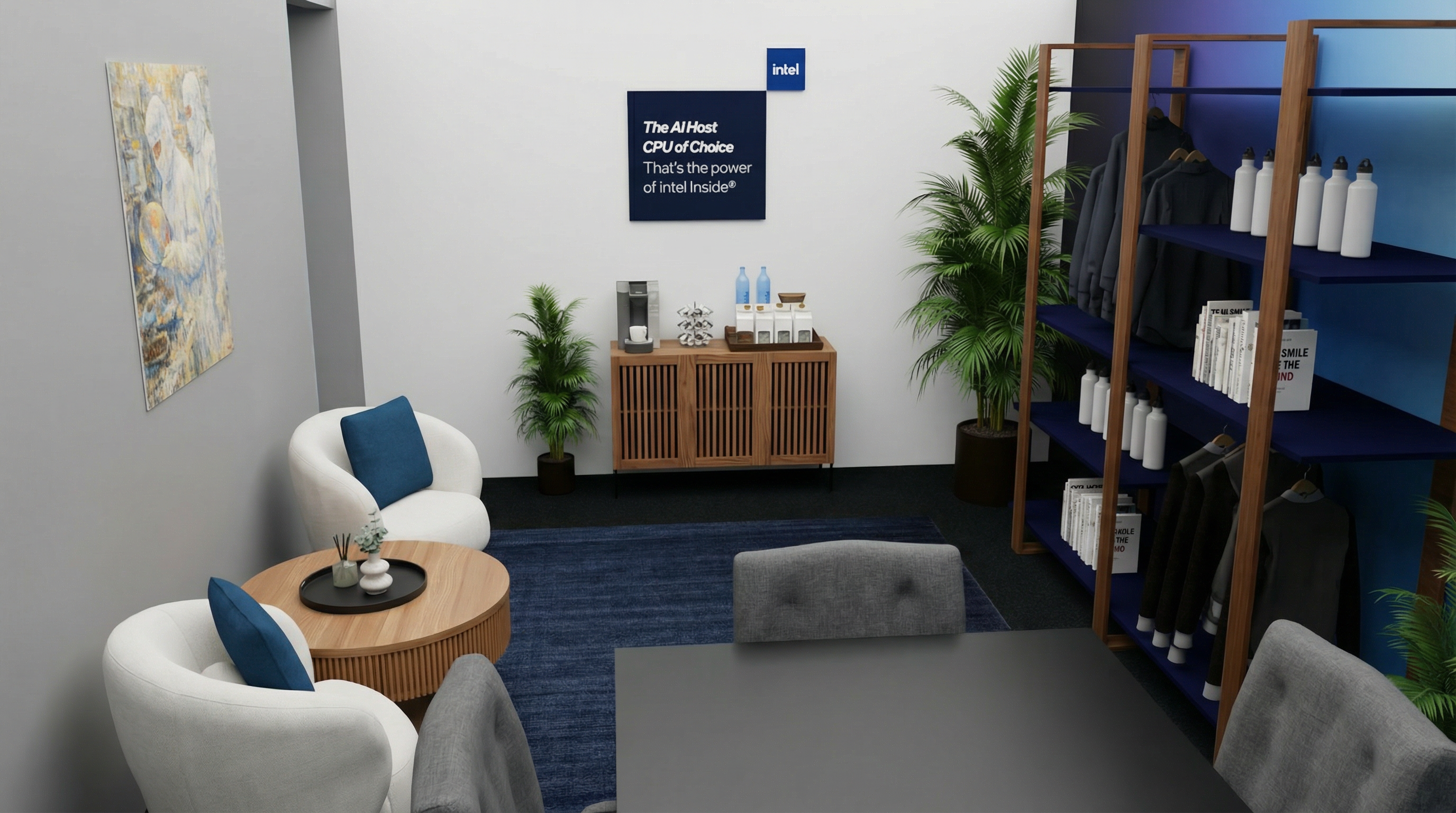 make photo realistic do not change colors or textures or add or remove anything do not change the color of the shelves on the shelving unit the left wall should be white not grey preserve 16 9 aspect ration of image do not add indirect lighting and use a clean white global illumination