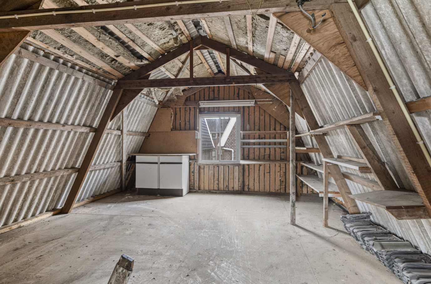 keep the wooden beams but make a smooth white ceiling and walls add a bed wooden oak floor with bedside tables and lush beddingsheets in natural colors