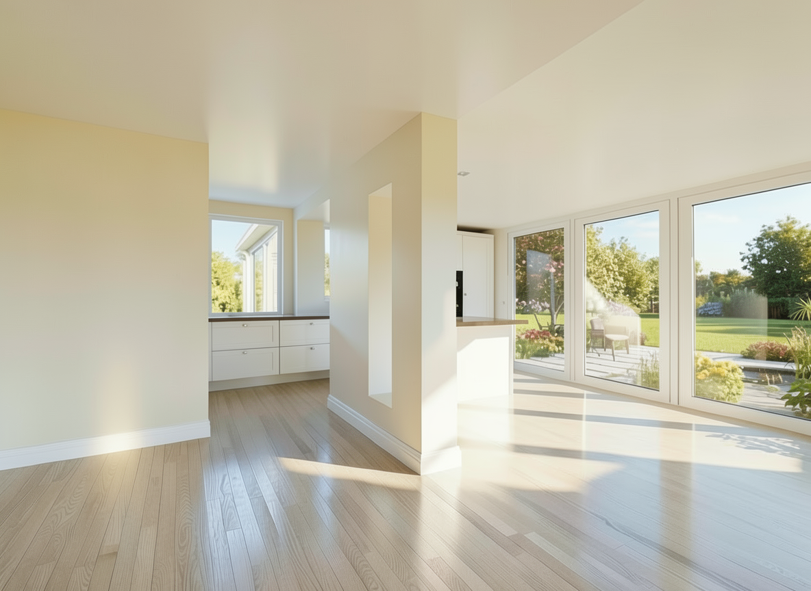 riproduci senza fare modifiche la presente immagine eccetto quanto specificato elimina il mobile basso in legno con le bottiglie appoggiate sopra