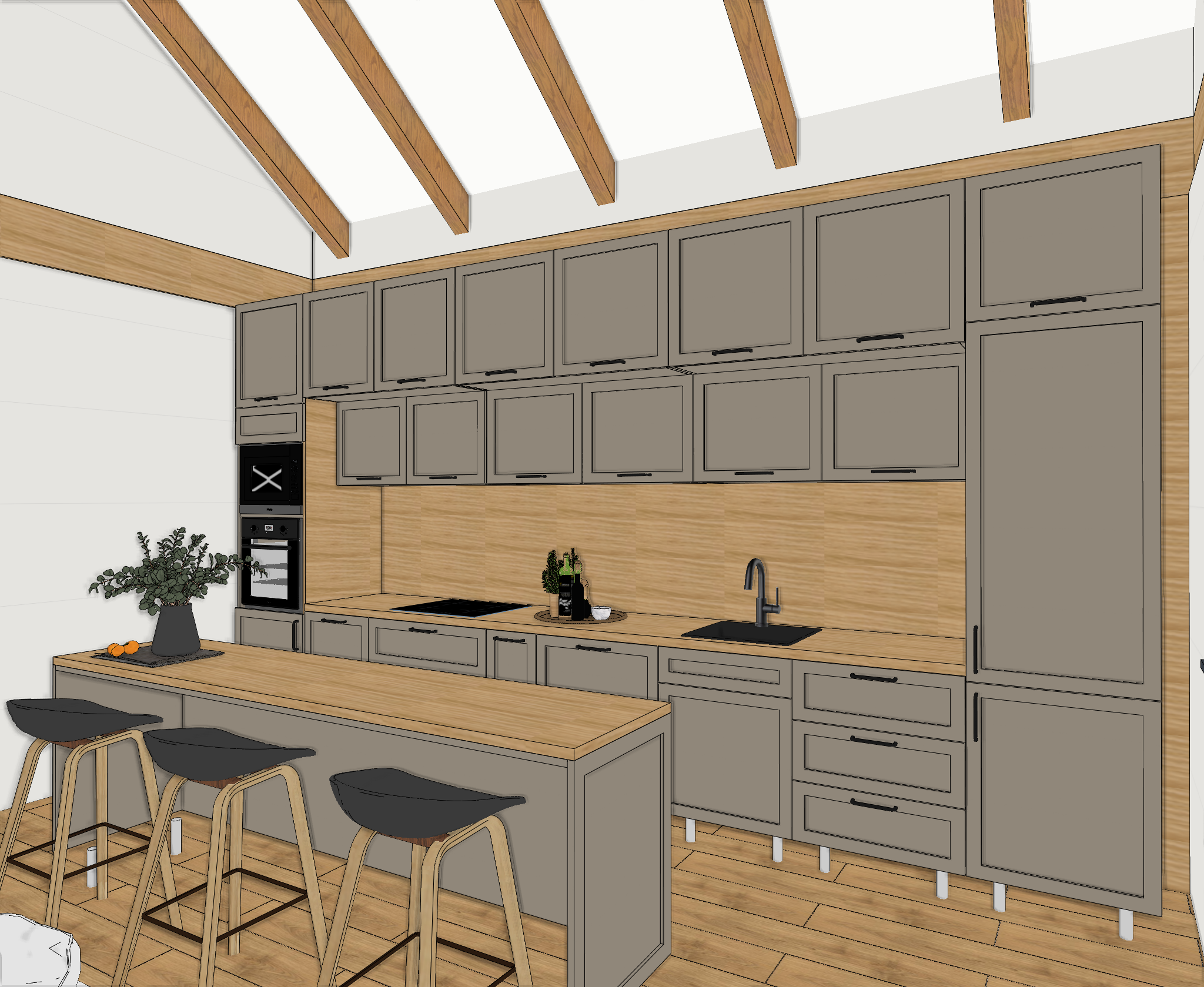 render maintain materials colors add solid light to the kitchen cabinet