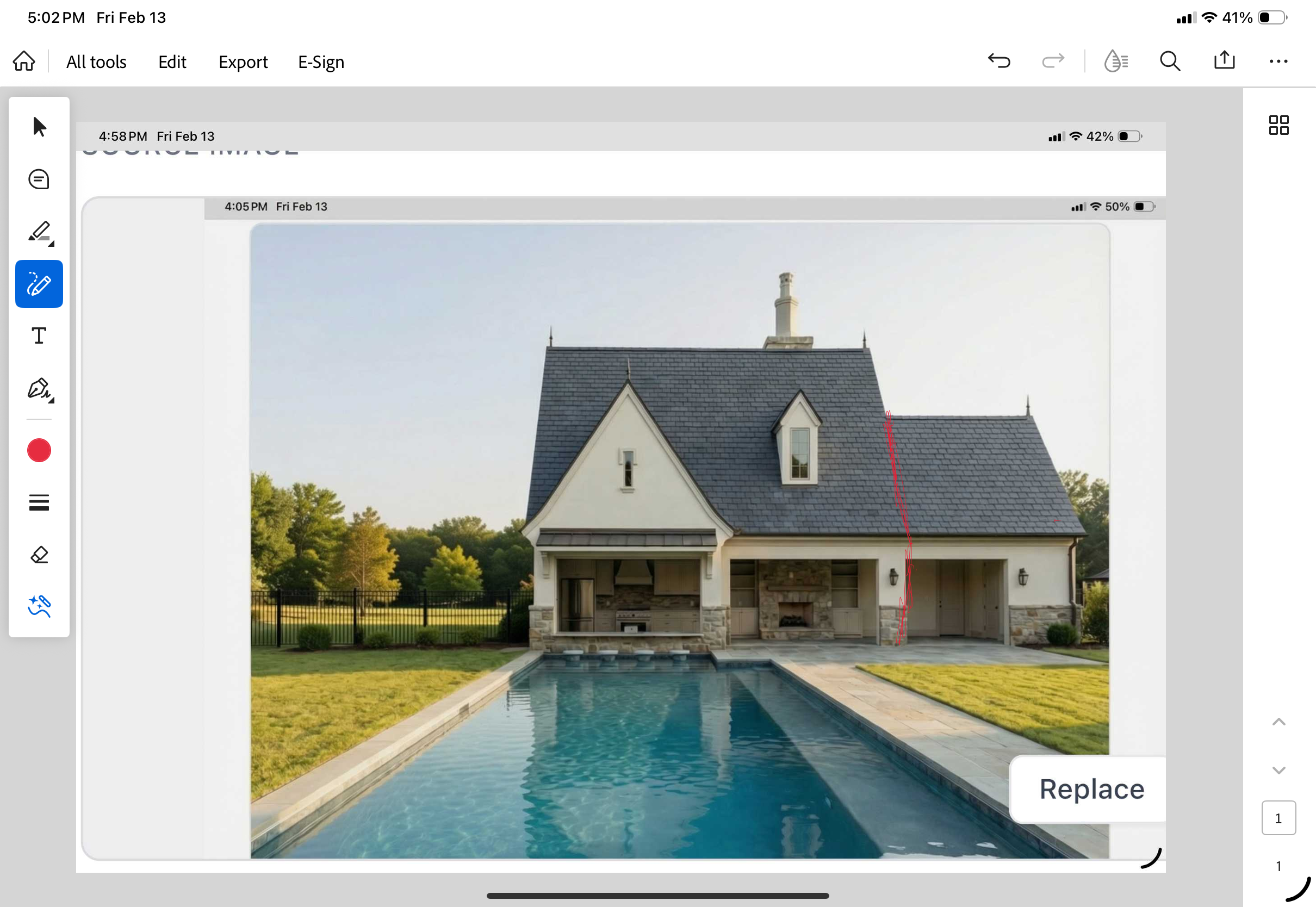 create a roof break and corner where red line is shown push section to right of red line back away from the front