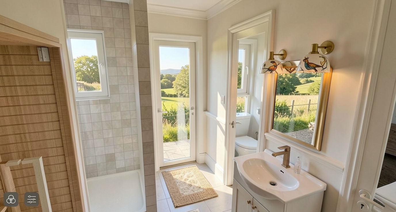 use the same yurt but delete the double door and create this window door configuration instead from left to right 1 timber awning window like in the render above 800mm wide 2 fixed panel exactually like the timber window but just a full glass panel 800mm wide 3 single door opening inward 800mm wide full glass panel 4 timber awning window the same as no 1