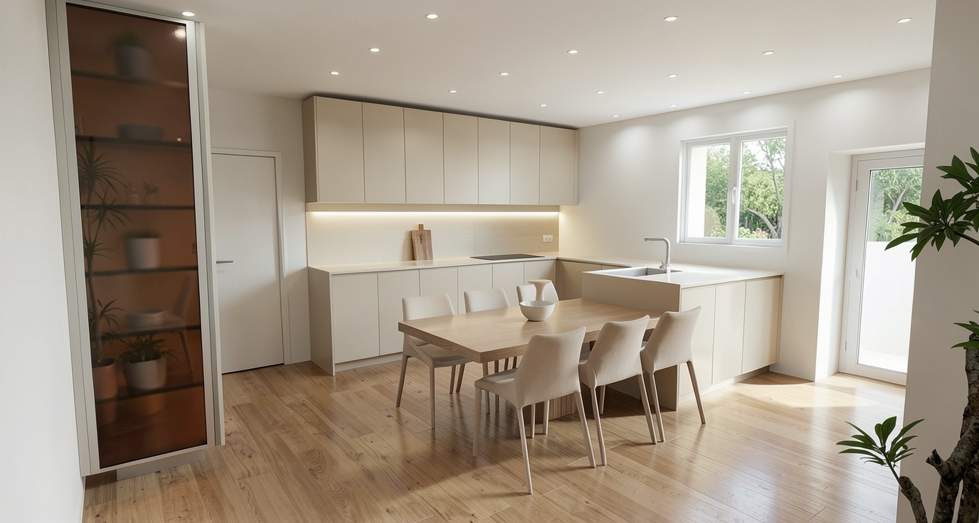 cinematic hyper realistic 4k video a group of diverse people standing in a circle in a sunny industrial courtyard with red brick walls engaged in a lively and natural conversation the characters are highly detailed with lifelike skin textures realistic facial expressions and natural eye movements a middle aged man in a dark jacket is gesturing warmly while speaking and a woman next to him is smiling holding a glass in the background other people are softly blurred sitting at tables under a canopy the camera performs a slow smooth handheld pan around the group soft natural daylight creates realistic shadows on the gravel ground subtle movements hair swaying in a light breeze blinking and authentic body language put the people not this close to the camera and focus on the buildings first and the people just secondary