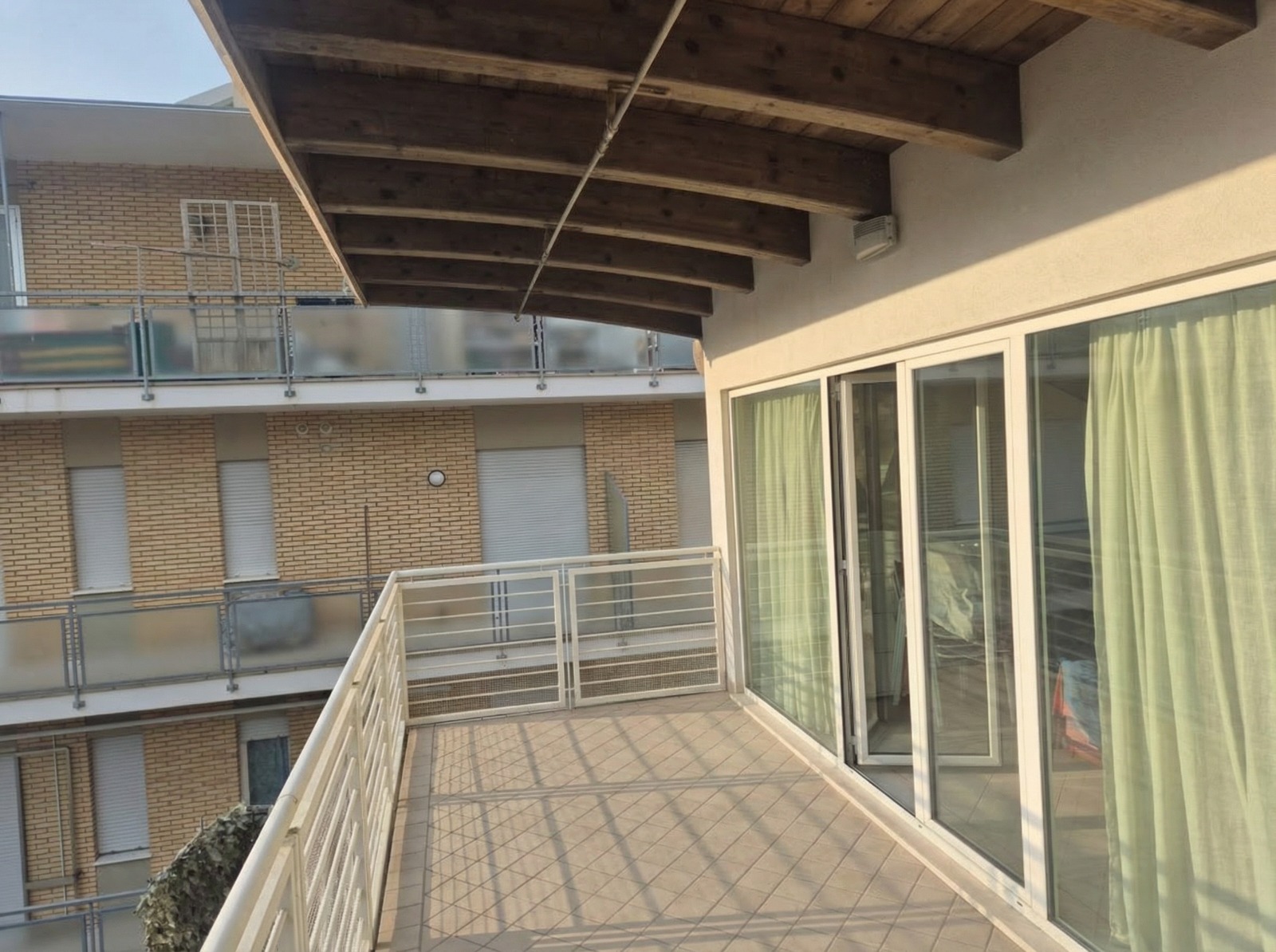 sposta tutto il parapetto della ringhiera davanti alle vetrate