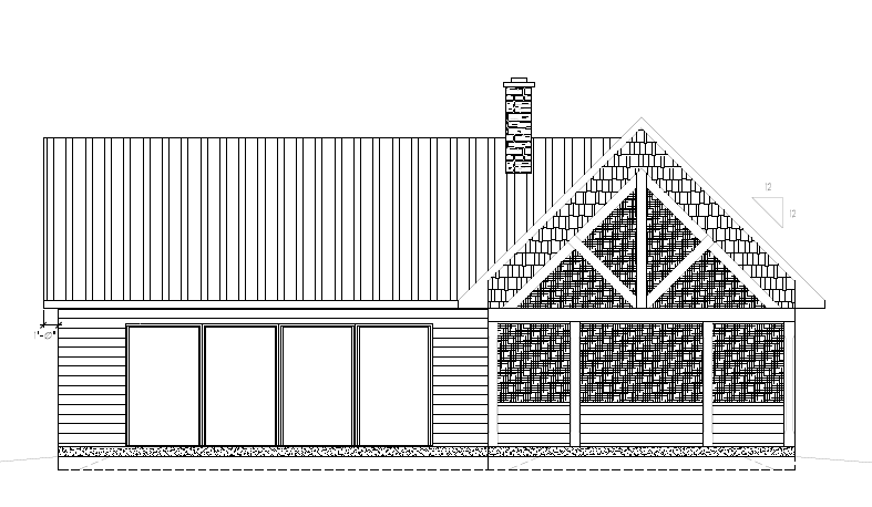 create realistic rendering steel roofing screened timber porch on a lake setting