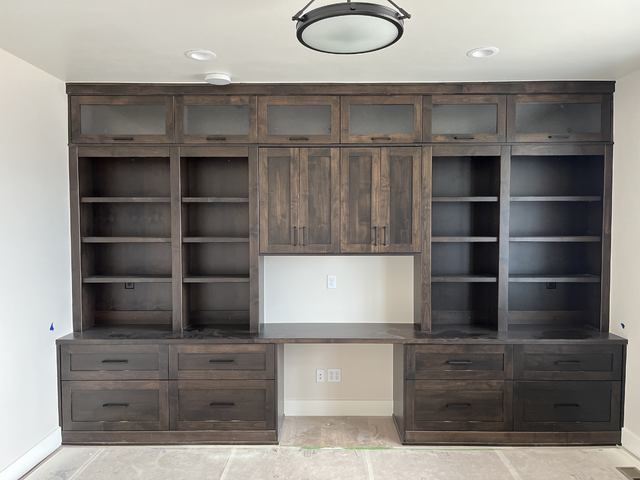add carpet to the entire floor and stage the countertop and open shelves for an office add a nice desk chair by the desk opening
