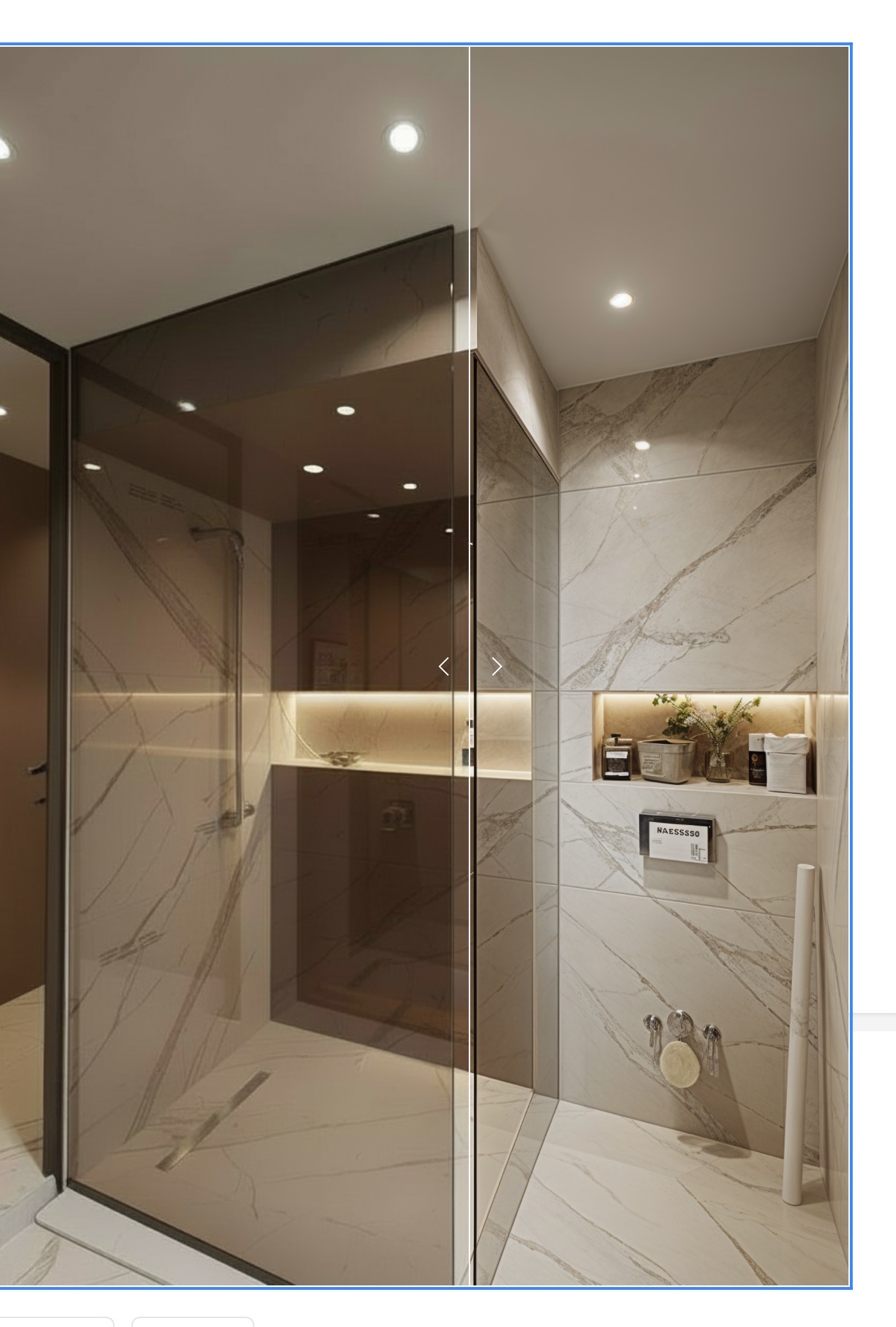 have the bulkhead painted beige and the shower glass partition framed with dark bronze clean up details so more realistic