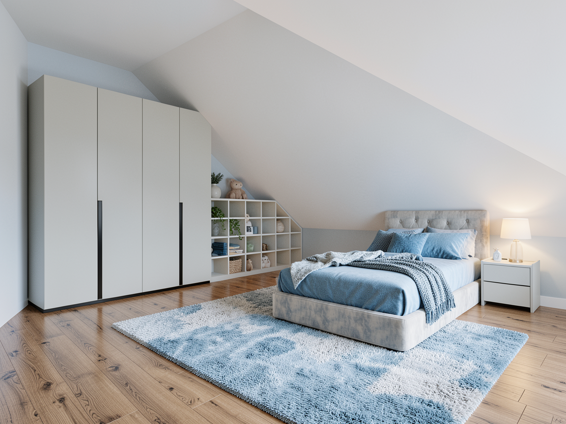remove the table near the bed from this image only the right side