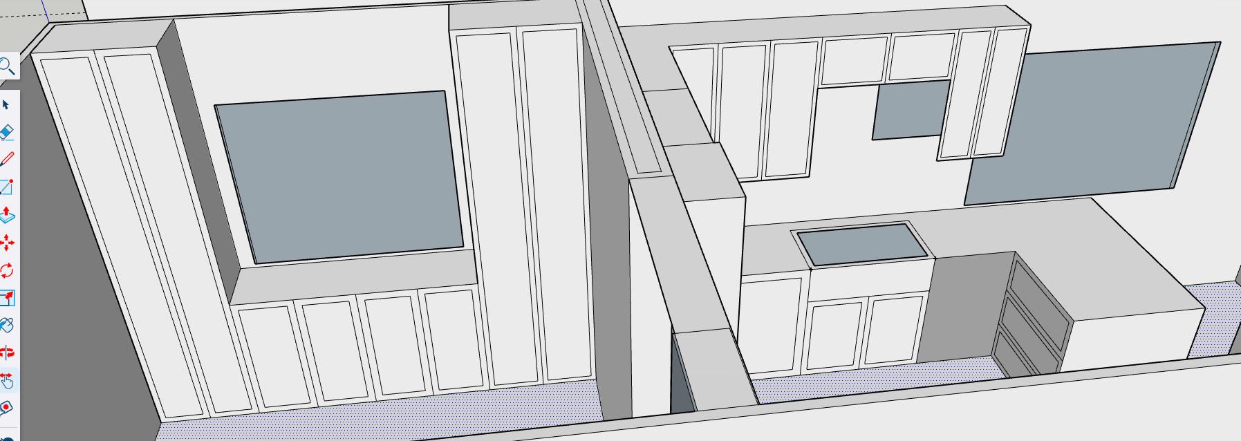 make the cabinets a warm light oak the countertops light oak the gray things on the walls are windows