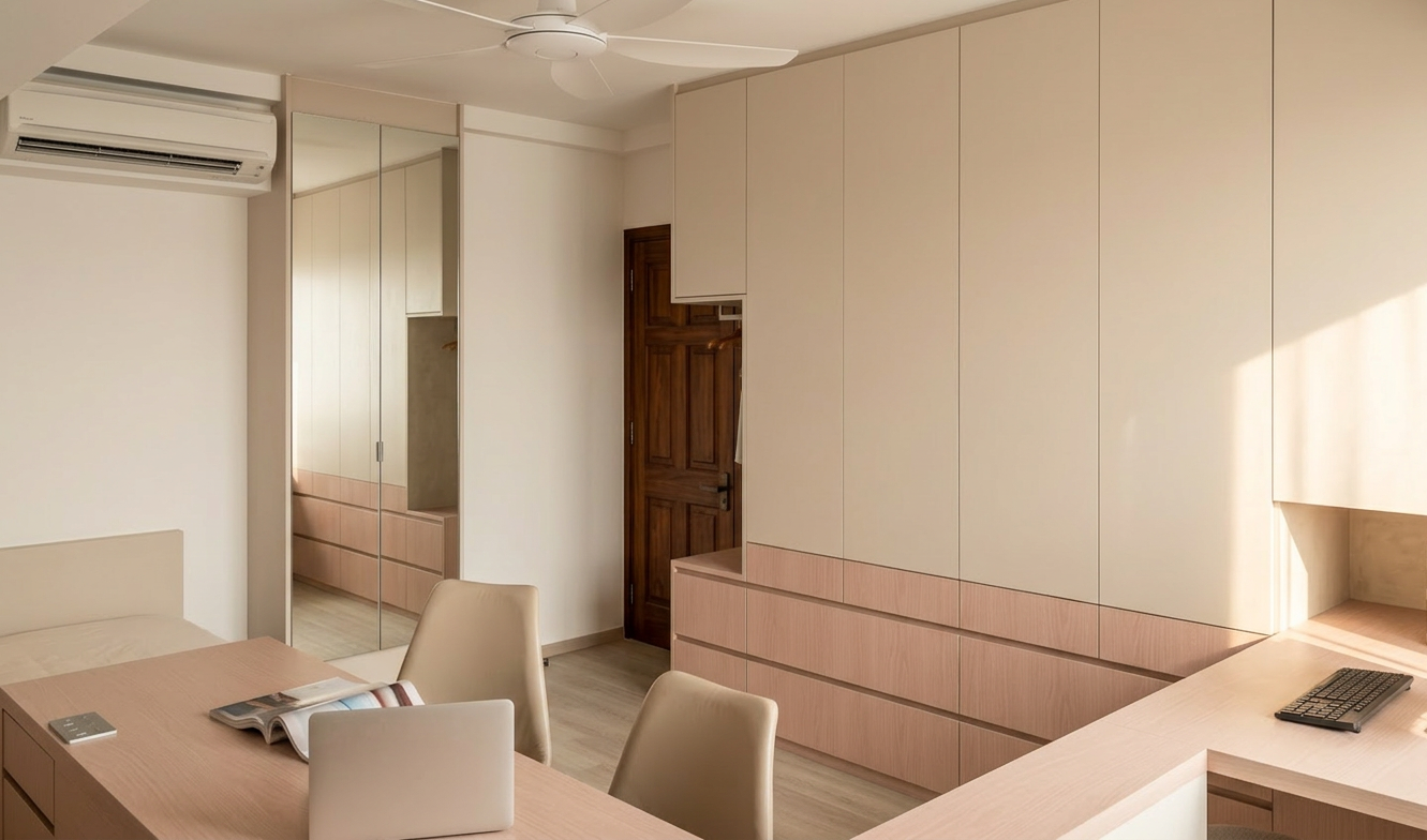 convert this floor plan into a realistic isometric 3d view of a full house show the space from an elevated angle with furniture walls and details visible modern minimal scandinavian light oak flooring white soft grey walls matte black accents simple contemporary furniture neutral textiles render as a clean marketing style isometric view with consistent wall height crisp edges soft daylight shadows white background high detail photorealistic but clean do not invent new doors or change door positions use the same furniture as shows on the plan do not change the orientation of the floorplan