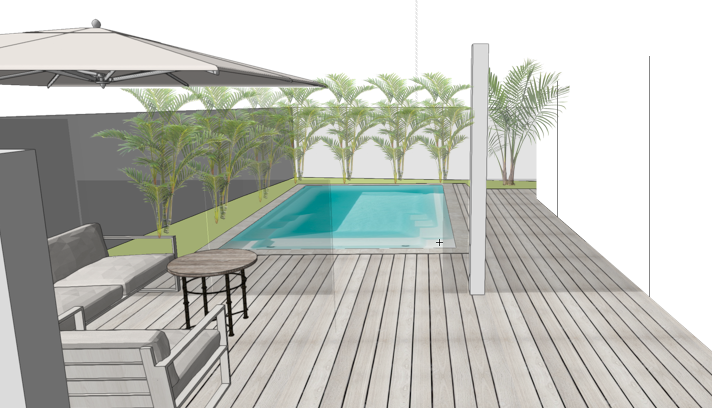 add lady in pool change right wall to a house wall with wide opening stacker door white weatherboard house all walls are white