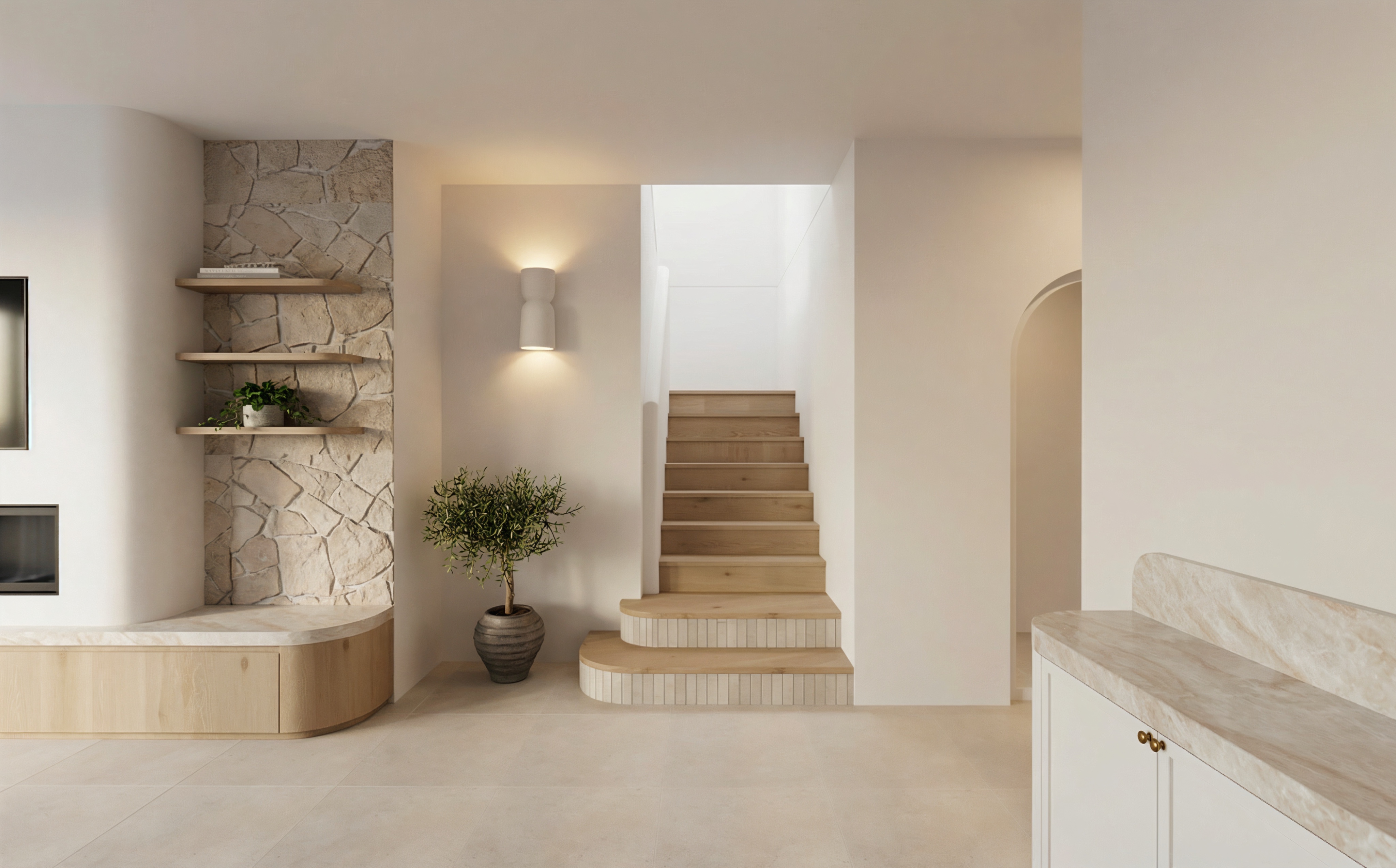make grout lines on stair tiles lighter make the olive tree pot a cream tone