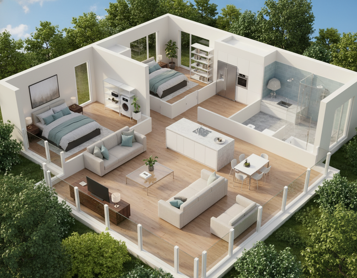 a realistic architectural render of a nursing home for the elderly built with stone fa ades and reinforced concrete eaves the building has a warm welcoming contemporary design combining traditional masonry with modern structural details the scene shows the exterior view surrounded by landscaped gardens paths with benches and lush greenery large windows on all fa ades bring natural light inside add elderly people walking sitting and interacting in the outdoor areas to reflect the social atmosphere of the residence bright daylight soft shadows calm and serene environment spanish countryside setting high level of architectural realism 8k detail architecture