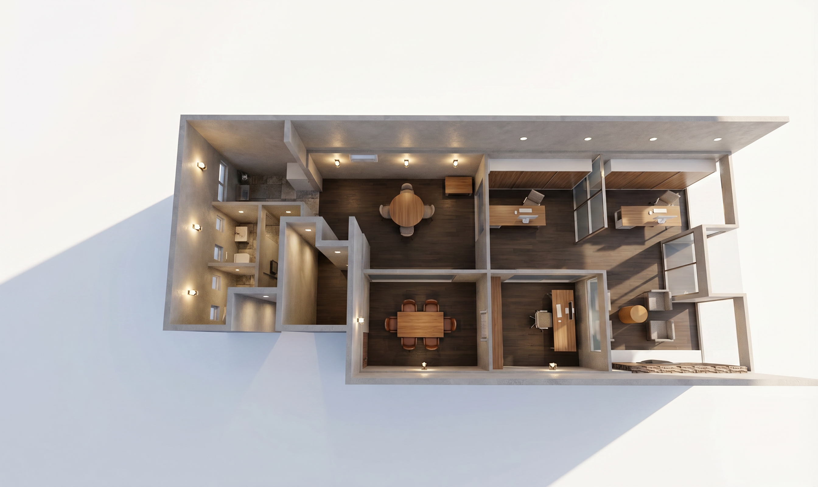 add kitchen cabinetry to the kitchen area make all the table and desk tops white