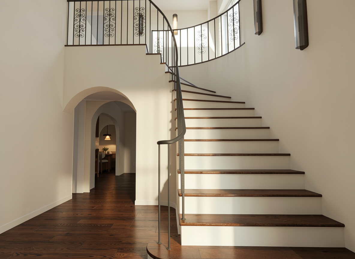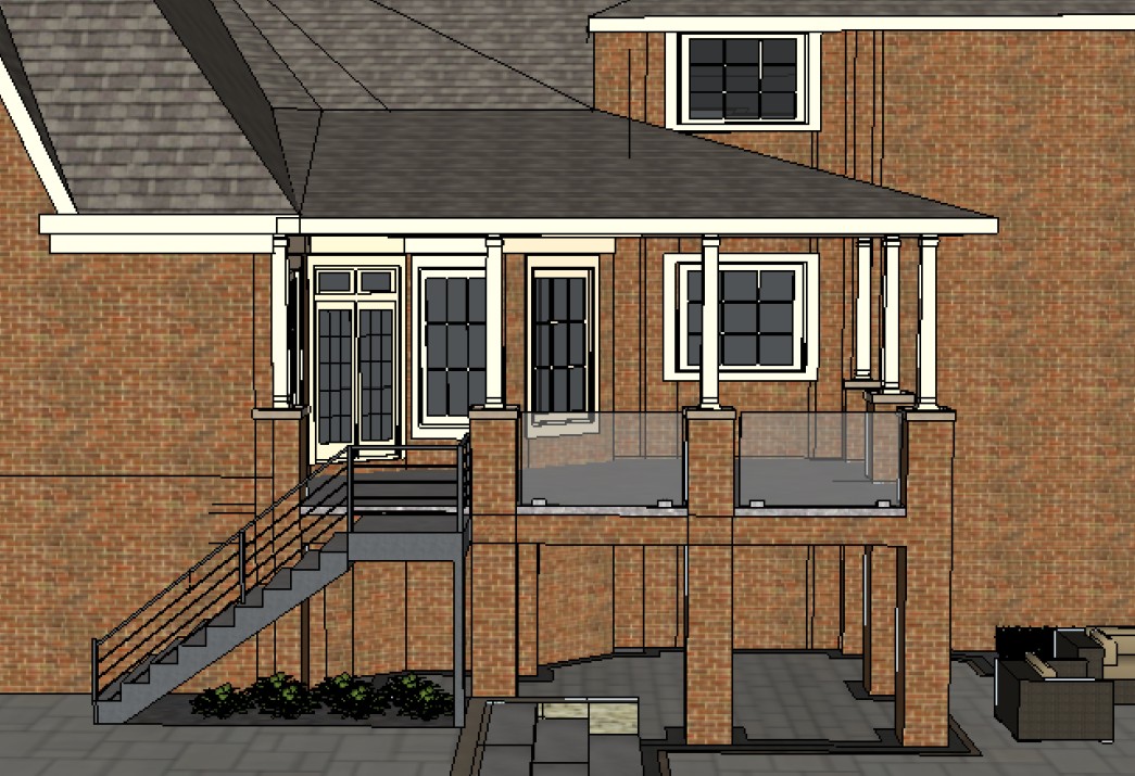 make decorative posts round add glass railing in between all pillars and on stairs but make them partially reflective add 8 recessed lighting in ceiling of lanai