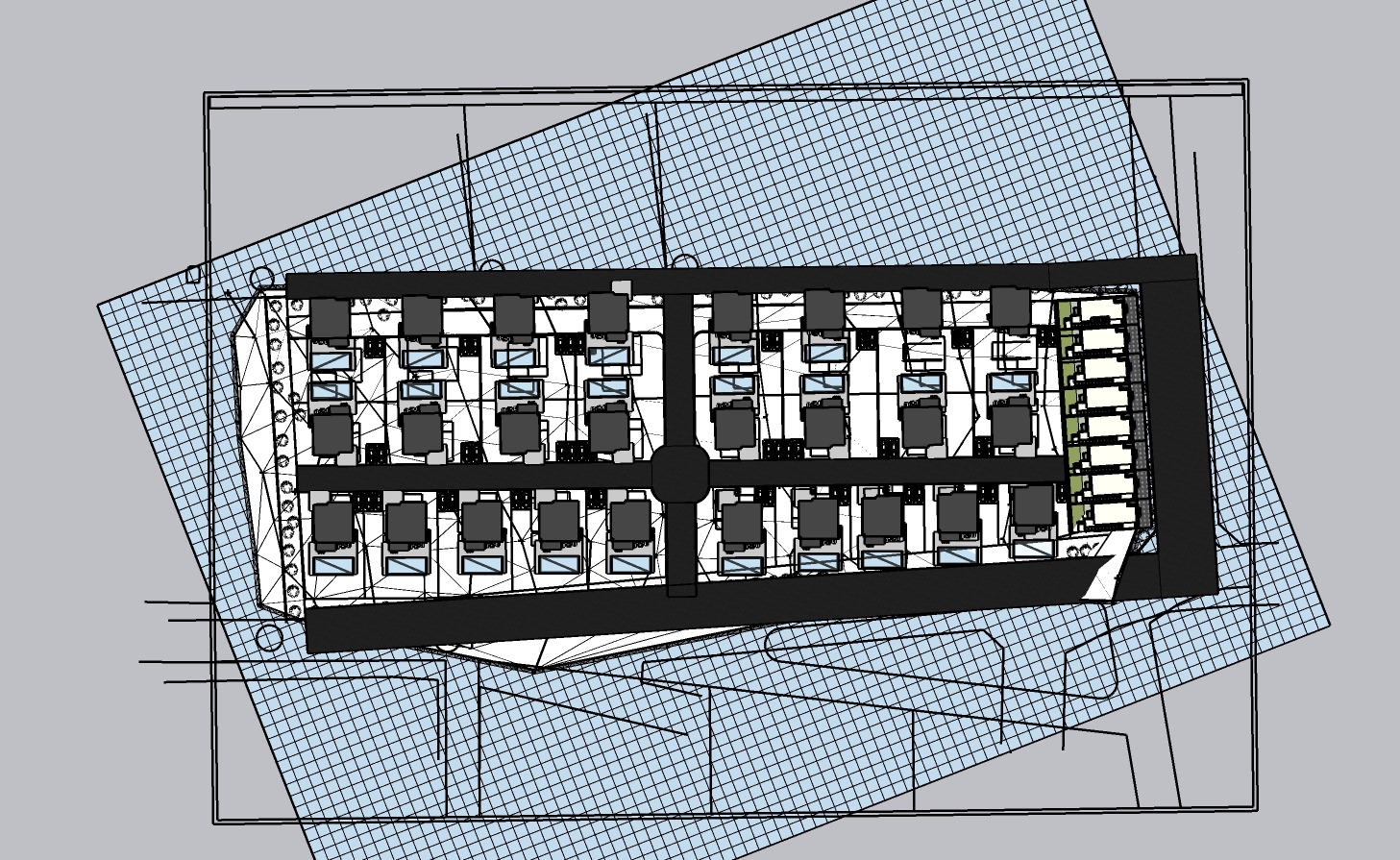 ultra photorealistic aerial architectural render of a modern villa masterplan strictly based on the provided input image critical preserve exactly exact number of villas exact positions spacing and orientations exact road layout and circulation exact site boundaries and geometry no additions no deletions no reinterpretation this is an image to image transformation the base plan must remain 100 identical architecture contemporary minimalist villas flat roofs clean volumes warm beige plaster natural travertine stone cladding matte black dark aluminum window frames large glass openings with subtle reflections realistic scale and proportions landscape mediterranean vegetation olive trees cypress low shrubs dry grass natural distribution avoid repetition layered planting foreground midground background depth terrain clearly visible sloped topography not flat approx 10m level difference across site villas stepping naturally with terrain soft terrain deformation erosion and color variation roads surfaces realistic asphalt roads with slight wear light stone pavements subtle curb details driveways clearly defined pools each villa has a private pool realistic water reflections slight ripples lighting very important golden hour sunset strong directional light long soft shadows warm highlights cool shadows cinematic contrast render style ultra realistic real estate marketing quality pbr materials physically correct textures global illumination ambient occlusion slight atmospheric haze for depth sharp but natural not overprocessed camera aerial 3 4 perspective slightly angled not top down wide lens but no distortion quality 8k resolution highly detailed cinematic composition