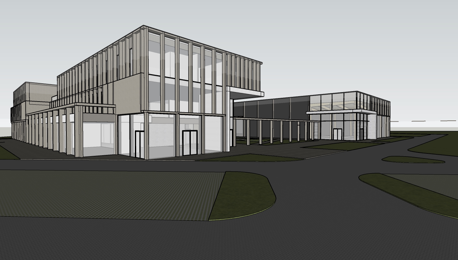 minimalism exterior shot zr b foto realistyczn wizualizacj w otoczeniu lasu mieszanego na elewacji u yj nast puj cych materia w w miejscach gdzie jest faktura drewna u yj drewno naturalne z pionowym us ojeniem lub pionowym podzia em faktura jasnego betonu beton architektoniczny dla budynku hali u yj materia w kolor grafitowy to p yta warstwowa antracytowa pionowe s upki i elementy na elewacji o fakturze drewna u yj drewno naturalne z pionowym us ojeniem witryny szklane z s upkami w fasadach kolor antracytowy otoczenie u yj naturalnego otoczenia traw mog by te trawy ozdobne nawierzchnia z kostki betonowej u o onej w jode k parkingi z kostki a urowej z traw w wype nieniu nie zmieniaj architektury i uk adu dr g mi dzy budynkiem hali a biurowym dodaj drzewa brzozy architecture