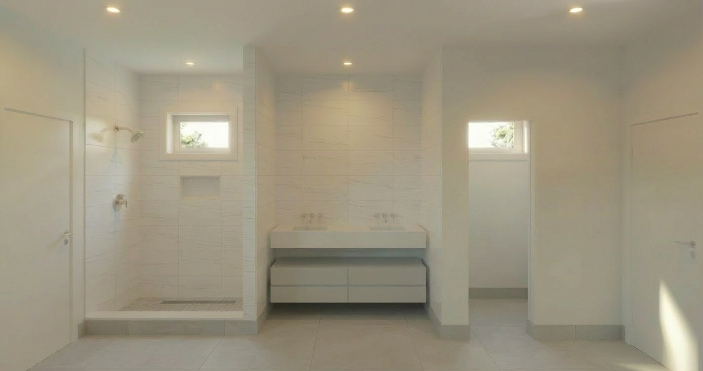 modernist exterior shot do not change any other details of the image except those specified below add realistic interior lighting visible through the windows to enhance the building s appearance at dusk evening apply a ceramic facade texture using marazzi grande resin look bianco divide the facade into large ceramic granite panels with subtle realistic joints between them maintaining clean and modern alignment architecture