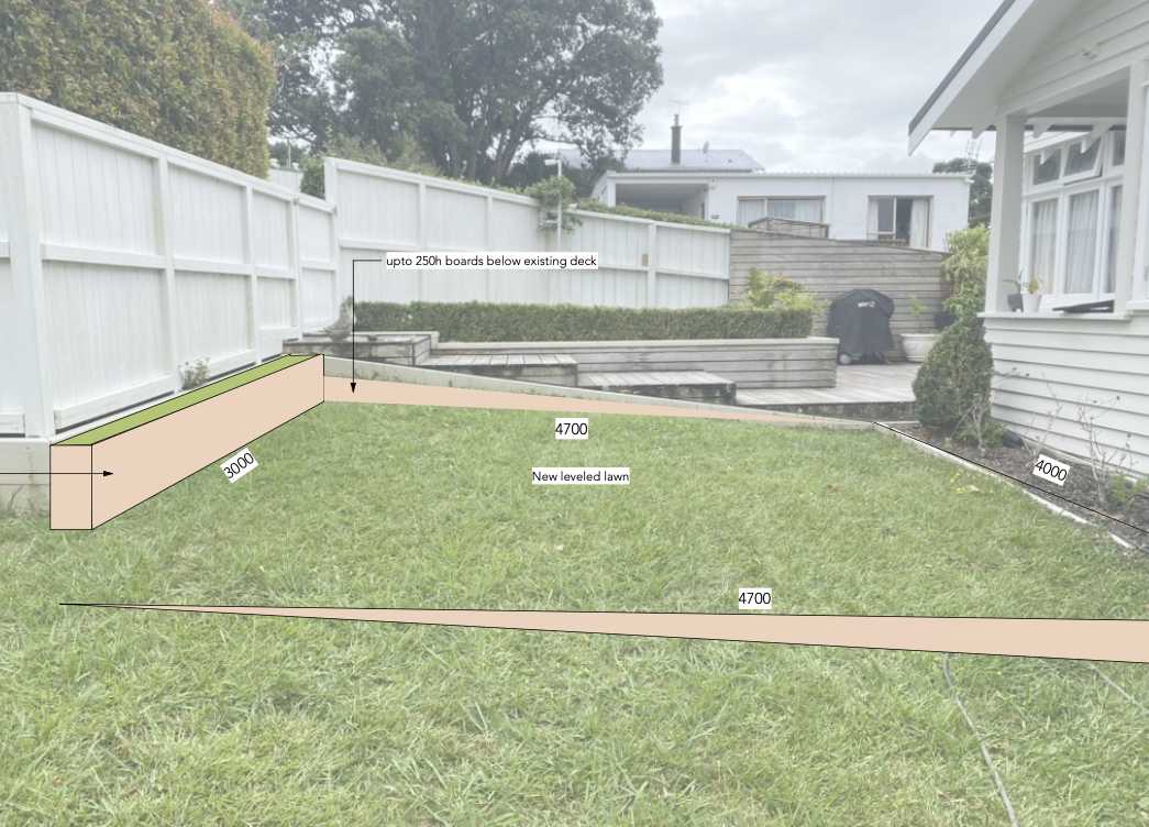 remove text brown colored areas are timber retaining walls add plants above left wall