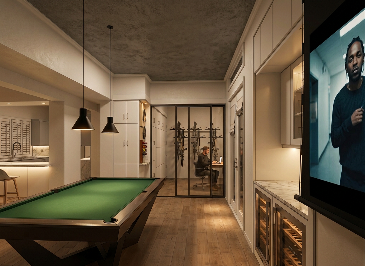 the shelves have warm lighting on the top there is also warm led lighting behind the gray panel