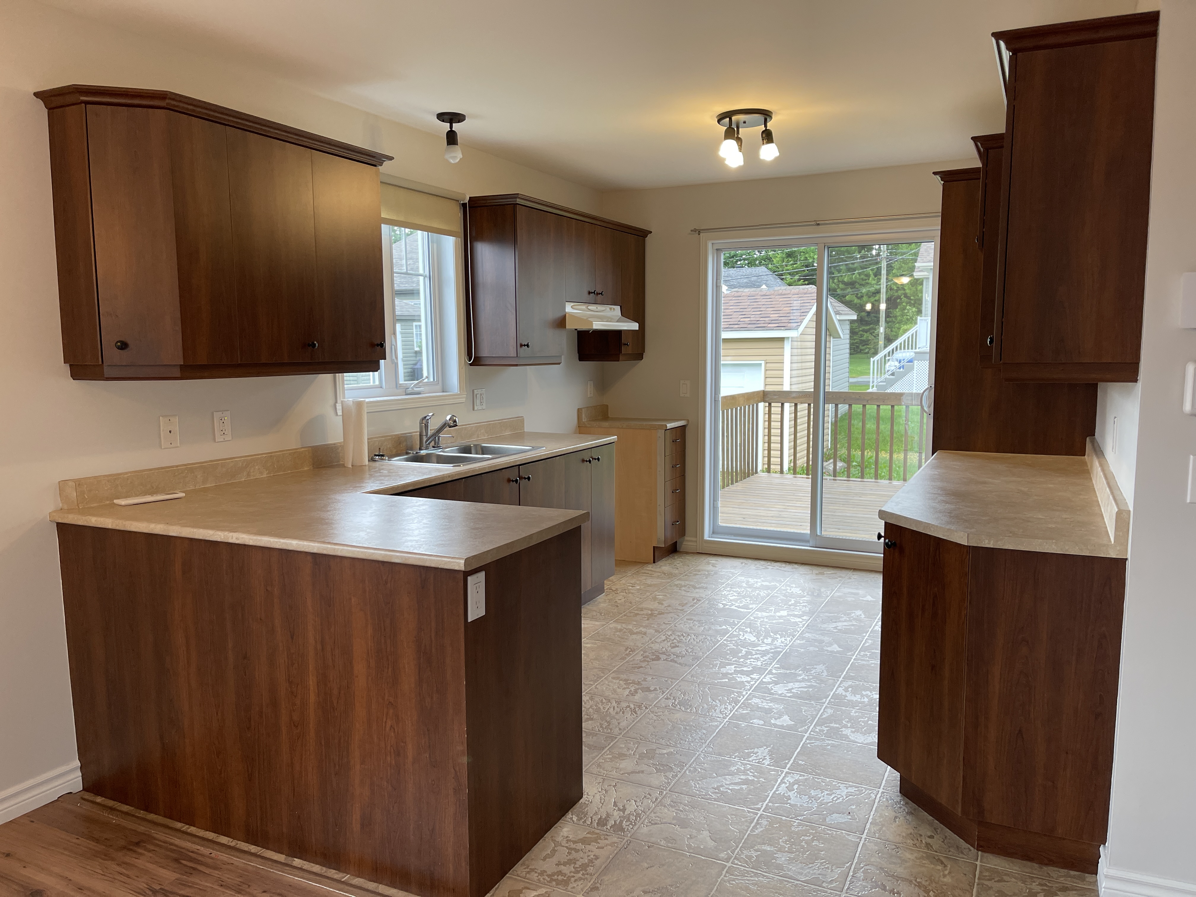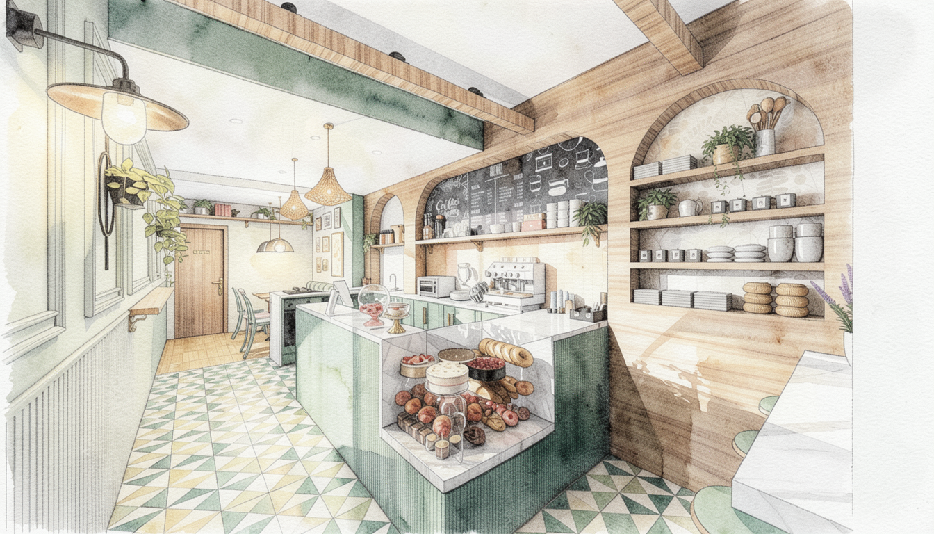 ajoute une cuisini re dans la cuisine et de la d coration sur le comptoir