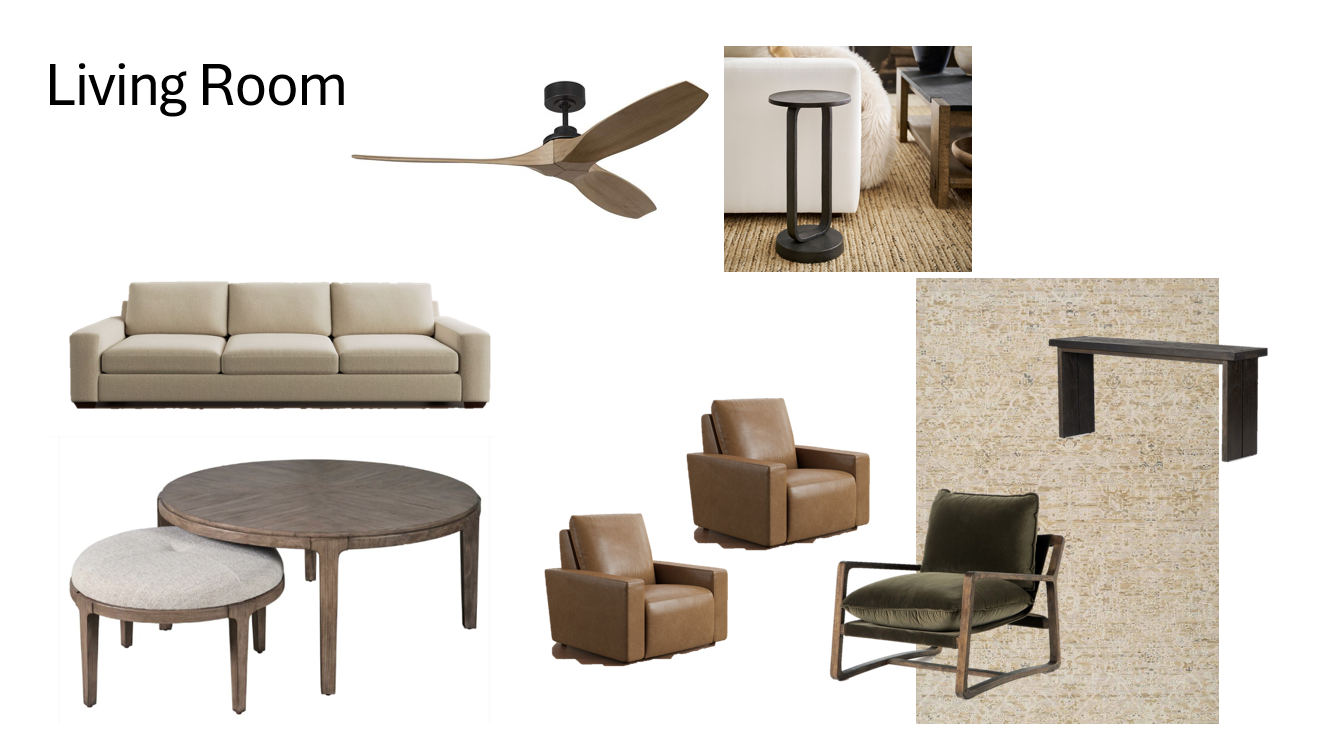 use this inspo board to create an image of a living room sherwin williams mortar color walls light wood plank flooring and tundra brick latigo fireplace with wood beam mantle and tv above use reference for floor plan lay out
