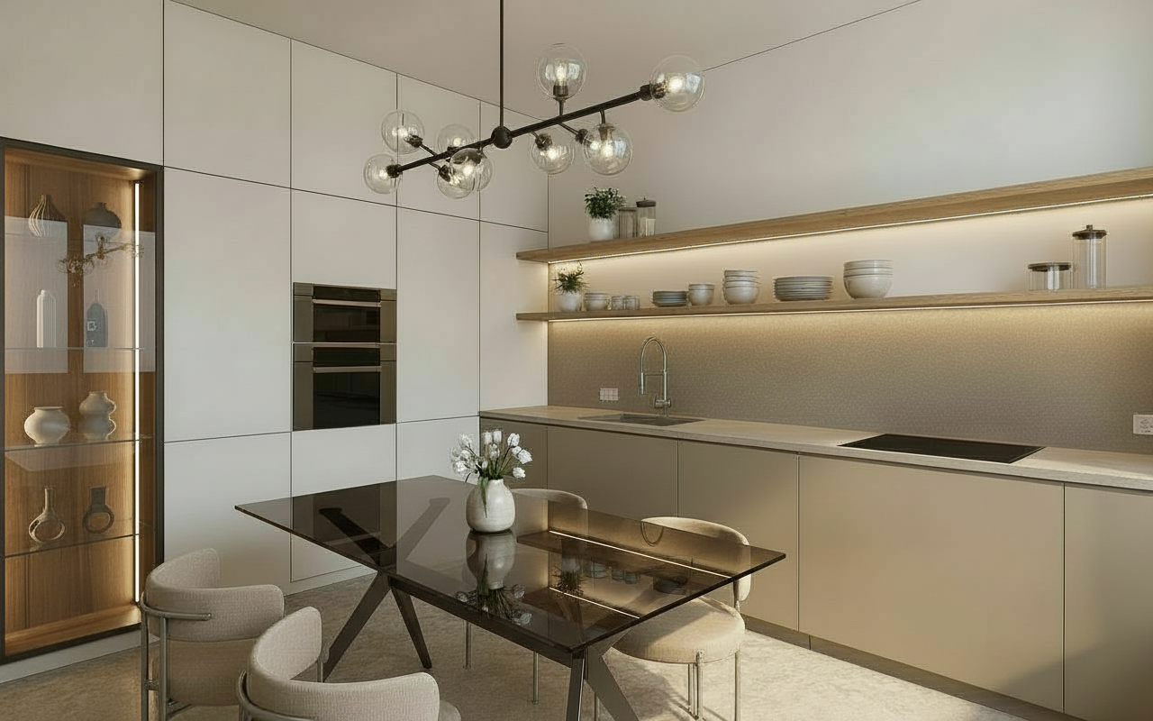elimina l ultima colonna bianca a destra e allunga le mensole in quella nicchia che si crea