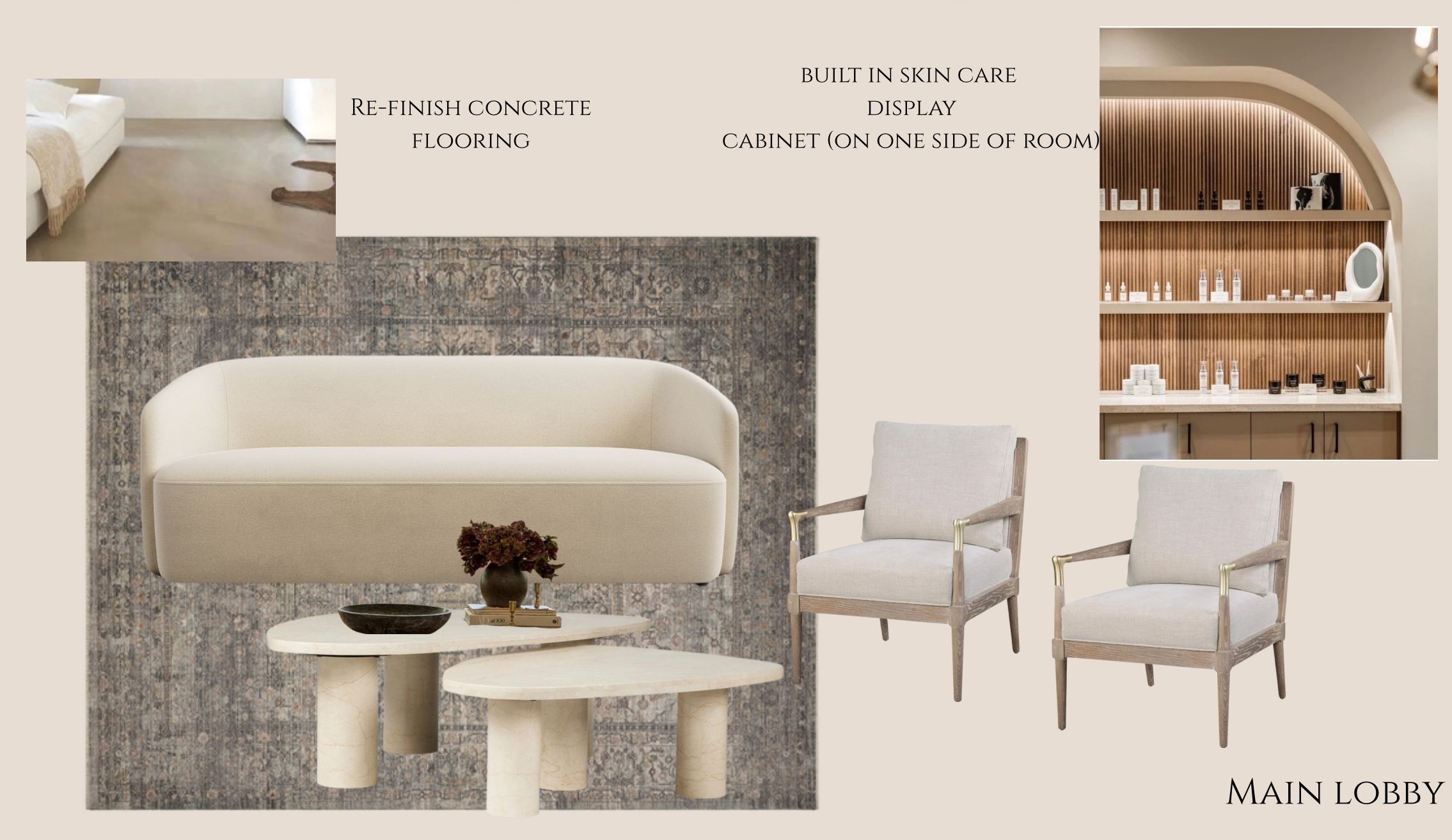 modernist interior shot i need sketchup with furniture in design board lobby is 21 3 7 8 by 22 3 1 2 stained concrete floor in a warm tone two couches back to back with 4 chairs architecture