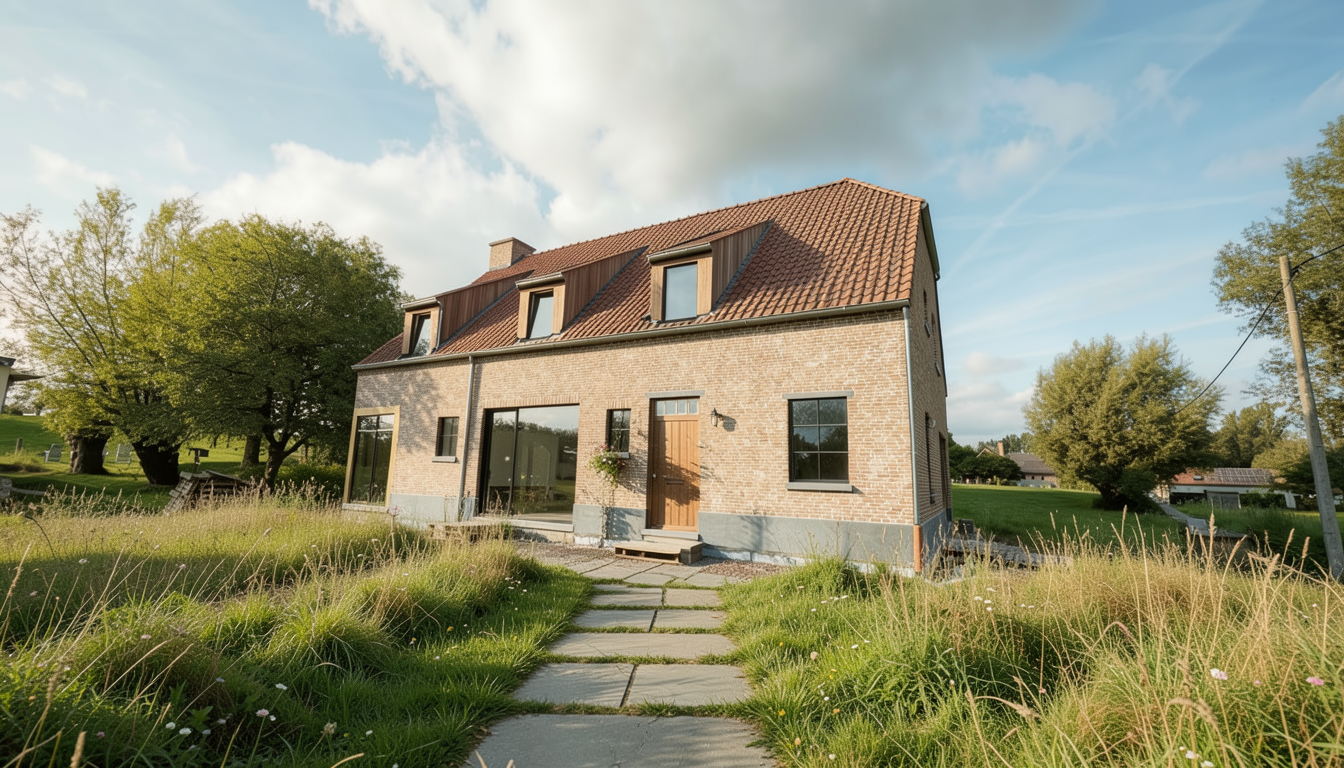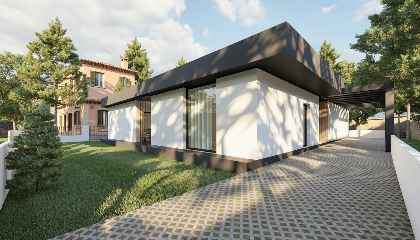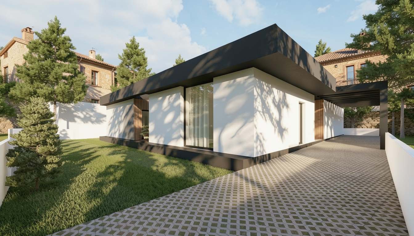 use the provided image as the base composition and camera angle preserve the layout proportions furniture positions and architectural elements exactly as in the reference image do not change the camera perspective room geometry furniture placement cabinetry layout or architectural elements convert the scene into a highly realistic interior render of a modern living room connected with a kitchen lighting atmosphere the scene is illuminated by natural daylight entering from the large window on the far left the daylight should feel warm and inviting rather than cold with soft golden tones typical of late afternoon sunlight interior lighting adds a warm ambient glow to the space the overall lighting should create a cozy atmosphere with warm highlights soft shadows and pleasant warm color temperature around 3500 4200k colors in the render should appear rich vibrant and lively with slightly increased color saturation while still remaining natural and realistic materials should look warm inviting and visually rich floor the floor throughout the entire space is made from natural oak wood the flooring consists of wide oak planks with a soft matte finish and subtle natural wood grain the color is a warm light to medium natural oak tone with realistic wood variation knots and grain structure the planks run in a consistent direction across the room and create a warm natural base for the interior living area center right on the right side of the living space place a medium dark green fabric sofa with a rich woven textile texture the fabric should have visible fibers and a natural matte appearance the color is a deep muted green but rich and lively with natural color depth under the sofa is a light gray rug with a clearly visible woven fiber structure the rug should look soft and tactile with subtle texture variation the two coffee tables in front of the sofa are made from light warm toned concrete with a matte surface and subtle material imperfections typical for cast concrete kitchen right side the kitchen cabinetry is terracotta colored with integrated milled handles finger pull grooves following the exact geometry of the reference design the terracotta color should appear rich warm and saturated emphasizing the warmth of the interior include a built in oven and microwave stacked vertically inside the tall cabinet the upper kitchen cabinets on the right side are made from black stained wood with a subtle visible wood grain the countertop is light gray natural stone with a matte finish and delicate natural stone variation kitchen backsplash and wall finish the wall behind the kitchen countertop is finished with smooth concrete microcement plaster betonov st rka this surface must be continuous and seamless without joints tiles panels grout lines seams or modular divisions important material rules no tiles no ceramic backsplash no stone slabs no panel joints no tile grid pattern no visible seams the surface should look like hand applied architectural microcement plaster with subtle tonal variation very fine concrete texture and a soft matte finish the backsplash should visually read as one continuous plaster surface applied directly on the wall the side panel of the tall kitchen cabinet is finished with the same concrete microcement plaster visually connecting with the backsplash and creating a consistent material language wall behind the sofa the wall behind the sofa is also finished with the same smooth concrete microcement plaster to create material continuity at the top of this wall place a wall mounted air conditioning unit behind the sofa there is also a small service door outline that is completely flush with the wall and finished in the same plaster so it blends seamlessly into the surface back wall with shelving system the shelving unit is made from black stained wood with a grid structure inside the shelving grid are rectangular panels in the same terracotta color as the kitchen cabinetry at the bottom of the shelving unit there is closed storage with drawers that feature the same integrated milled handles as the kitchen the wall behind the shelving unit is white plaster near the top of this wall place chrome ventilation grilles tv wall left side the lower section of the tv wall is black stained wood cabinetry with drawers and integrated milled handles the upper cabinets are light beige inside the shelves there are led strips mounted on the underside of the shelves creating soft warm ambient lighting that enhances the cozy atmosphere the back panel behind the television niche is black stained wood window far left a large window allows warm natural sunlight to enter the room and illuminate the materials realistically ceiling and lighting the ceiling is smooth white plaster a ceiling light fixture made from opal glass with a gold upper detail emits soft warm diffused light that contributes to the warm and inviting atmosphere door and hallway the door into the room is glass through the door the entry hallway is visible containing a wardrobe in a subtle warm pink color rendering style ultra photorealistic interior visualization architectural visualization quality rich color rendering warm color palette vibrant yet realistic colors natural lighting global illumination soft shadows high material detail subtle imperfections architectural photography style cinematic warmth 8k detail
