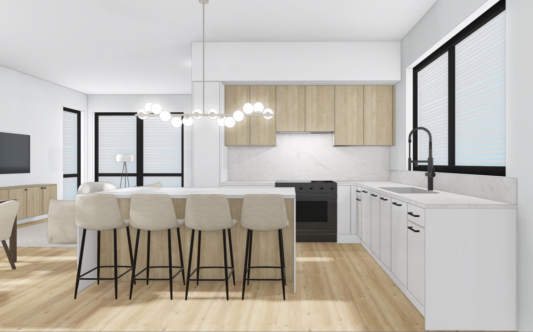 add flowers on the island moody light foggy sunny cambridge ma background behind the windows do not change cabinets nor add open shelves