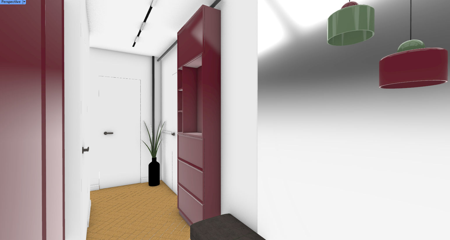 make it a photo realistic corridor interior apply light micro cement on the walls lights from the pendant lighting fixtures behind the mirror and from the lighting fixtures on the ceiling do not change camera angle