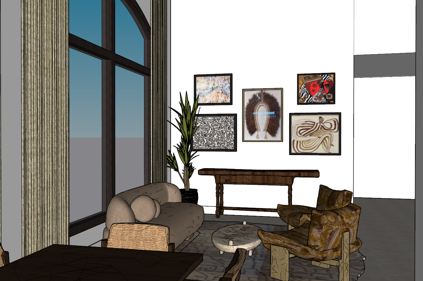 do not change geomtry on sofa the windows look out the the garden