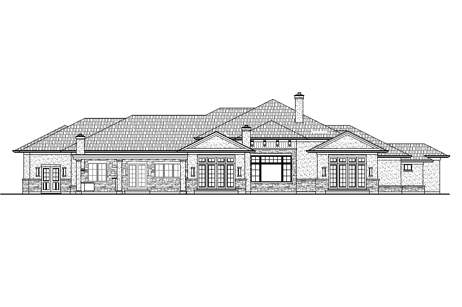 dark asphalt shingles light stucco black door and window frames black corbels dark vertical wood above windows