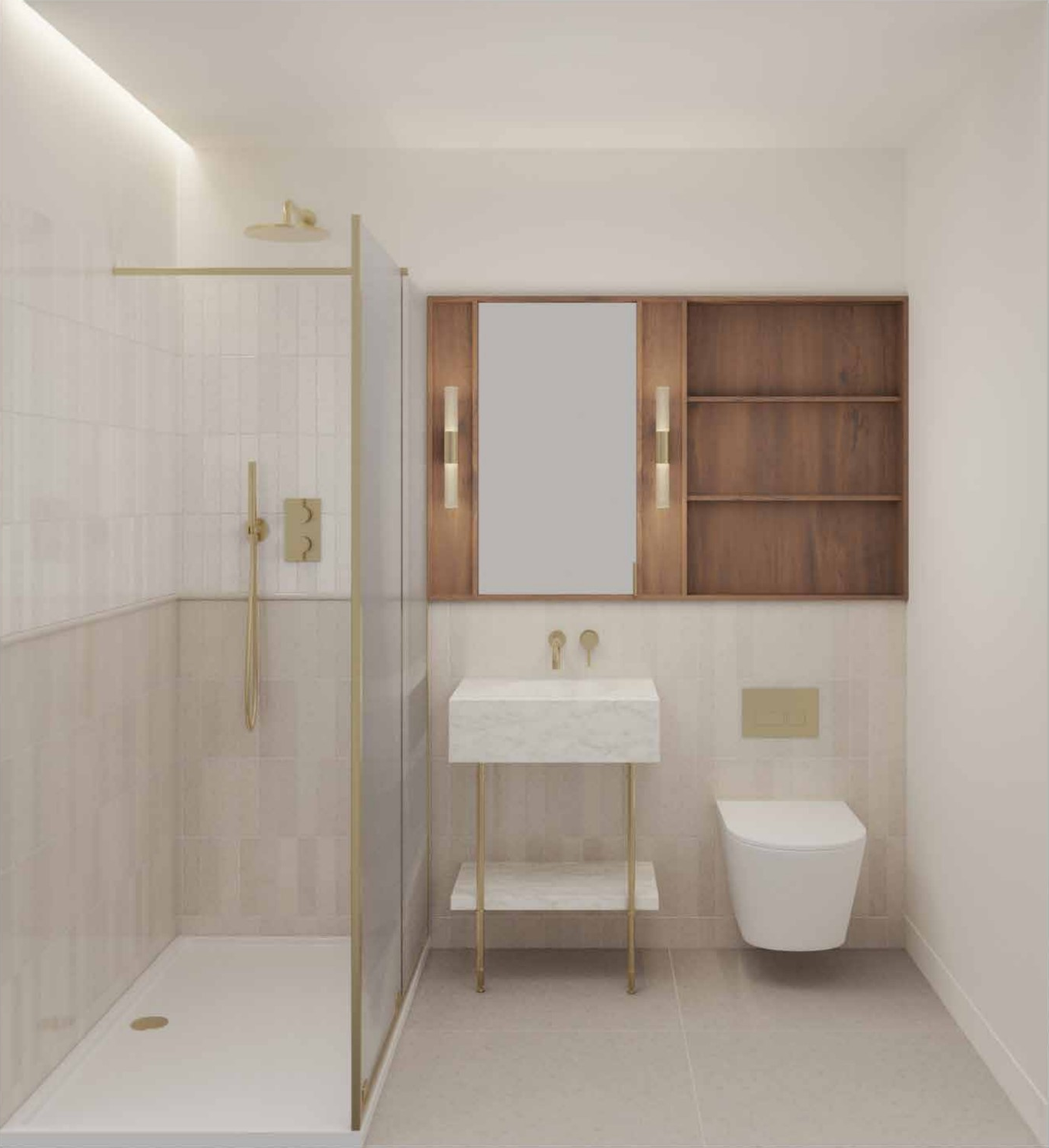 can you bring this bathroom to life remove the shower tray so it is simply tiled wetroom floor with slotted drain at the end soft lighting giving a luxury feel