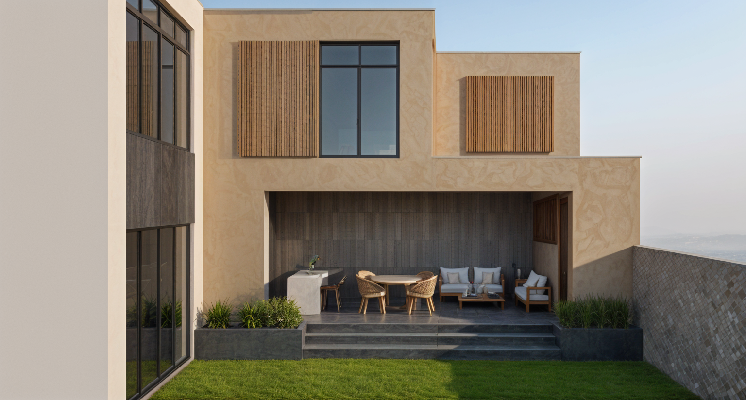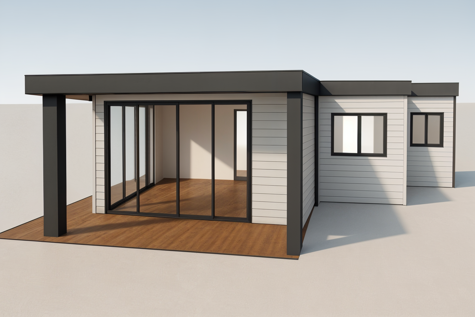 turn lights on timber floor plaster walls garden outside tvs on acoustical panels on ceiling add warmer wall colour remove centre window add light at outside window where tree is