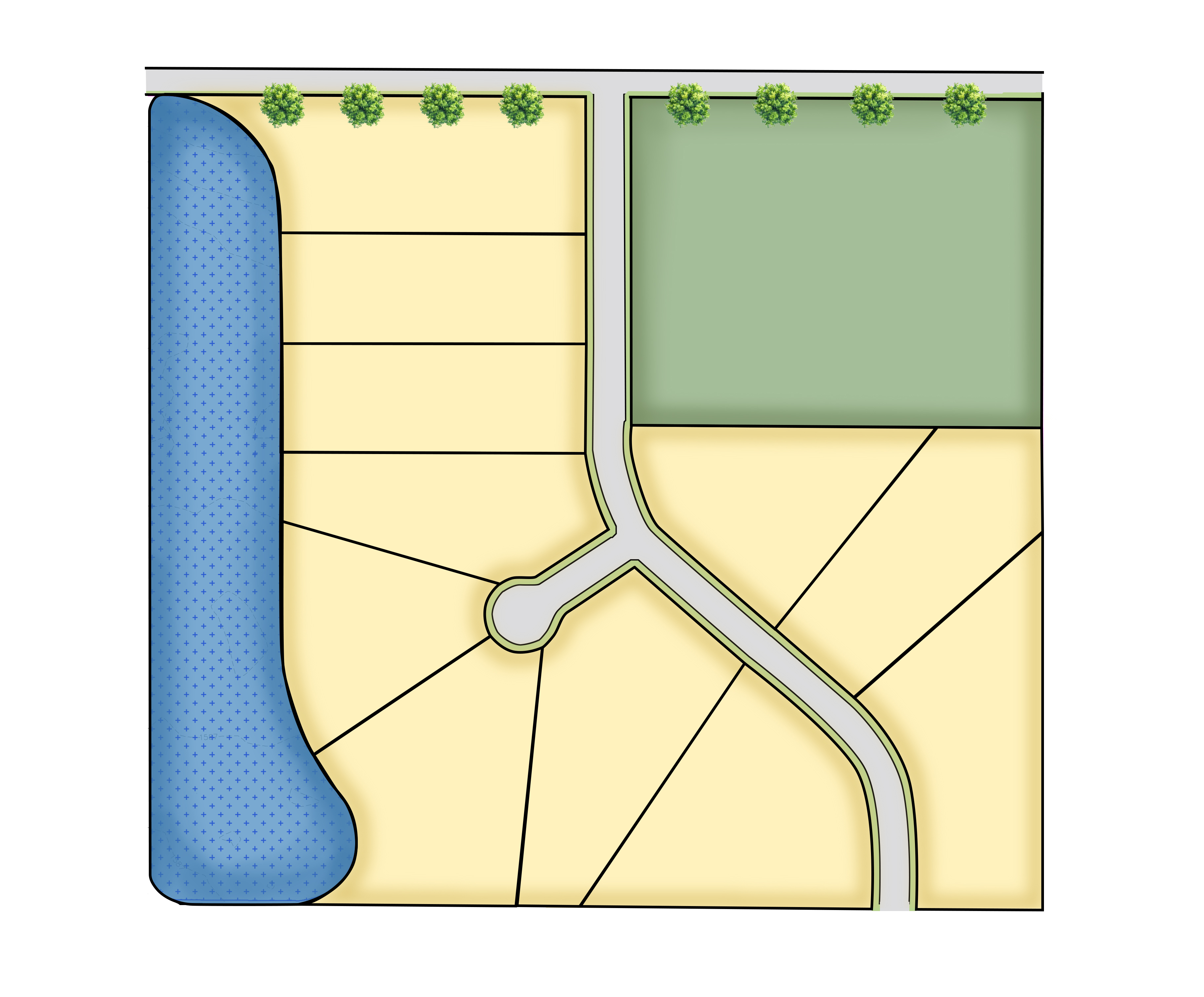 add houses with garage and driveway to each lot