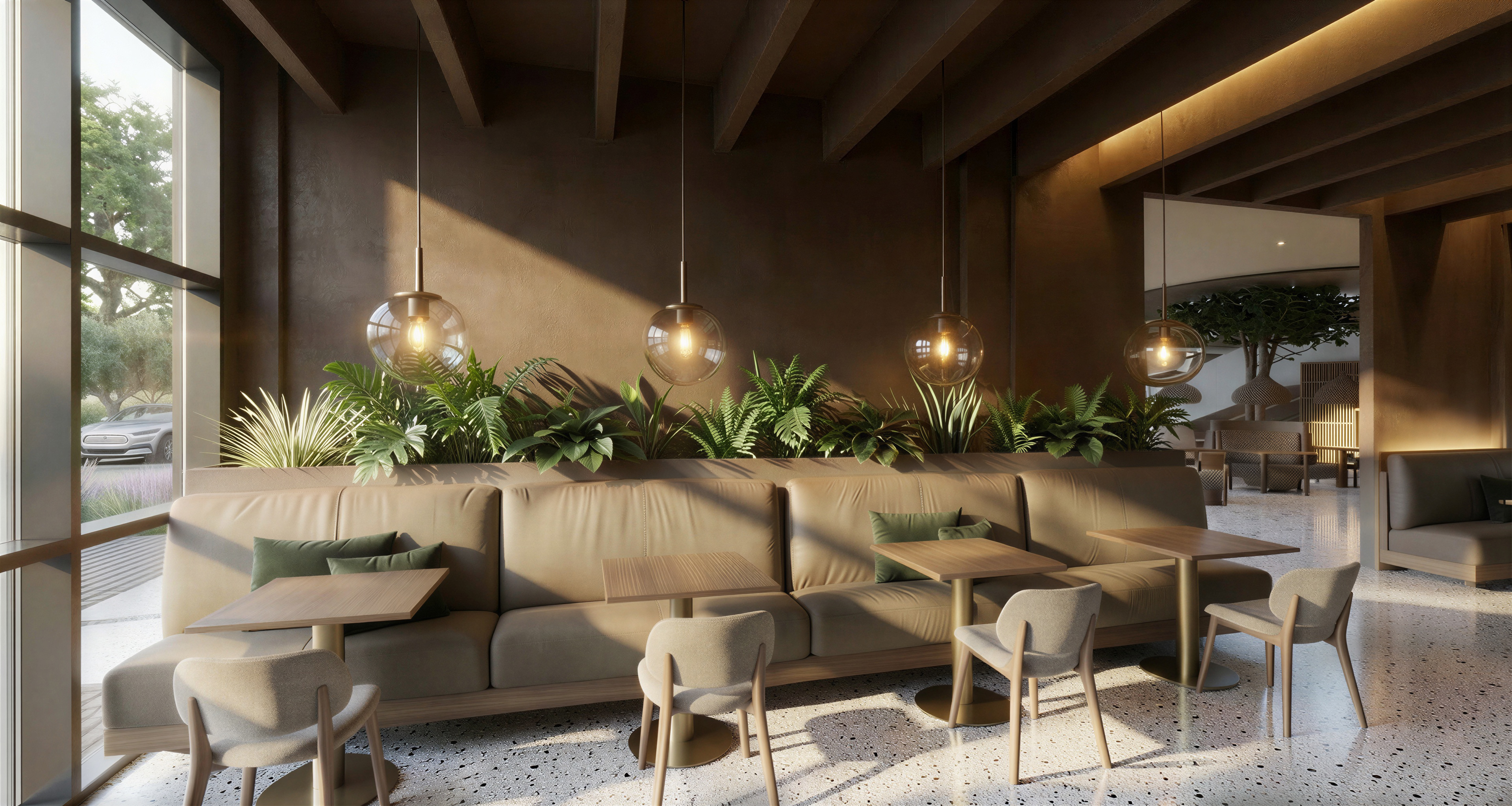 the leather couch can be a bit brighter beige the wall is vilt in a brown terra color