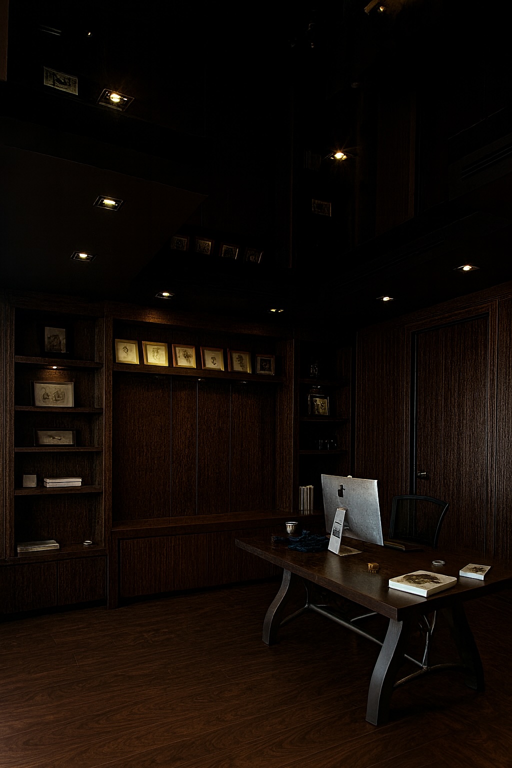 add this chandelier https www alliedmaker com monoscope 4 chandelier the ceiling is a high gloss black paint