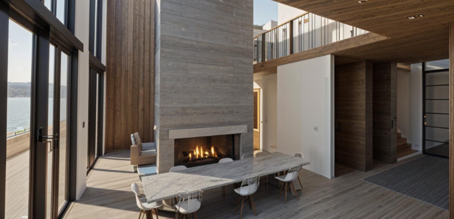 keep everything the same make the firplace two way galss