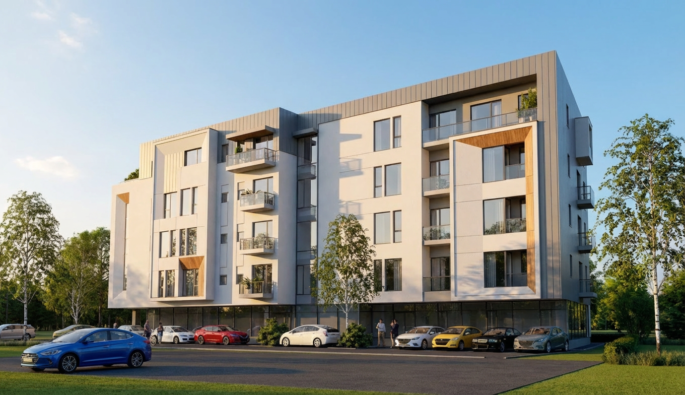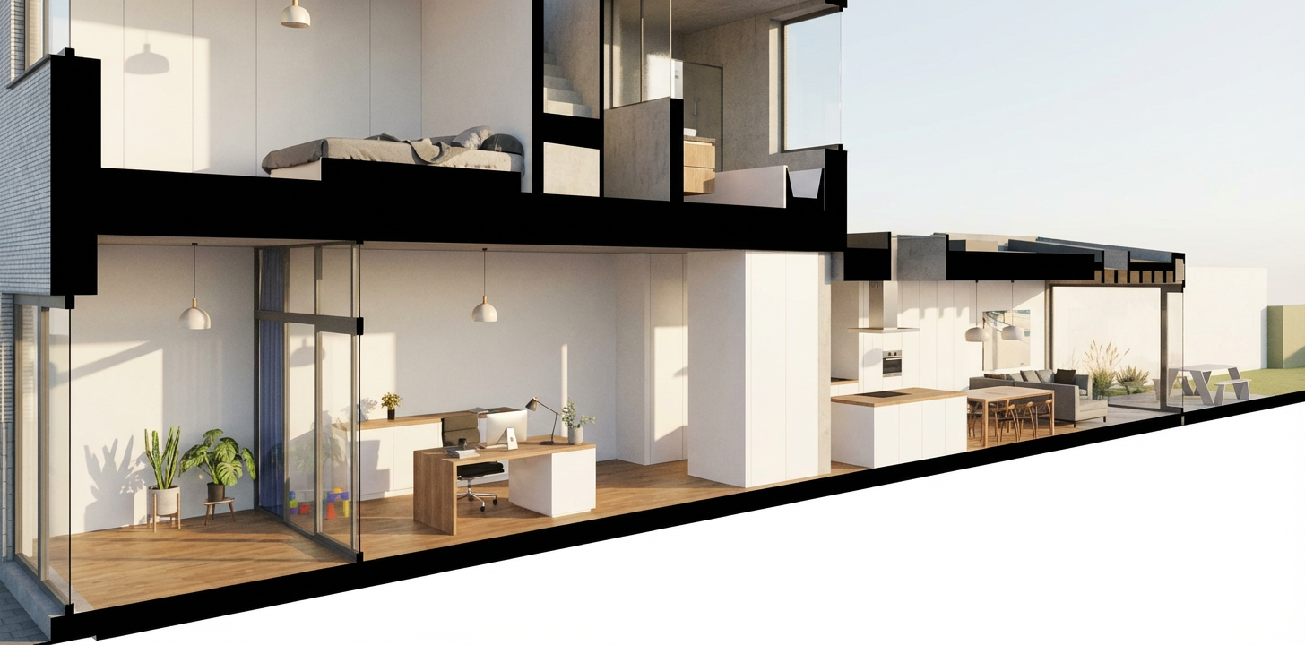 render photo realistic keeping finishes and structure the same standard office grid ceiling fridge on far right