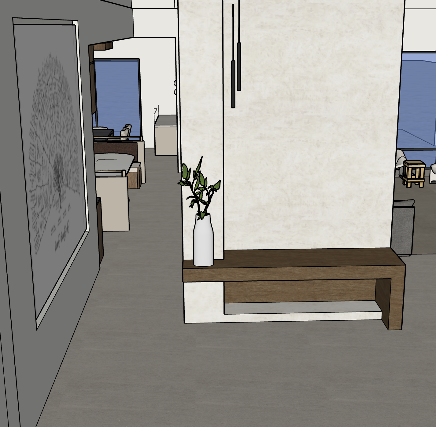 turn pendant lights on add tape light around recessed art piece at left of photo