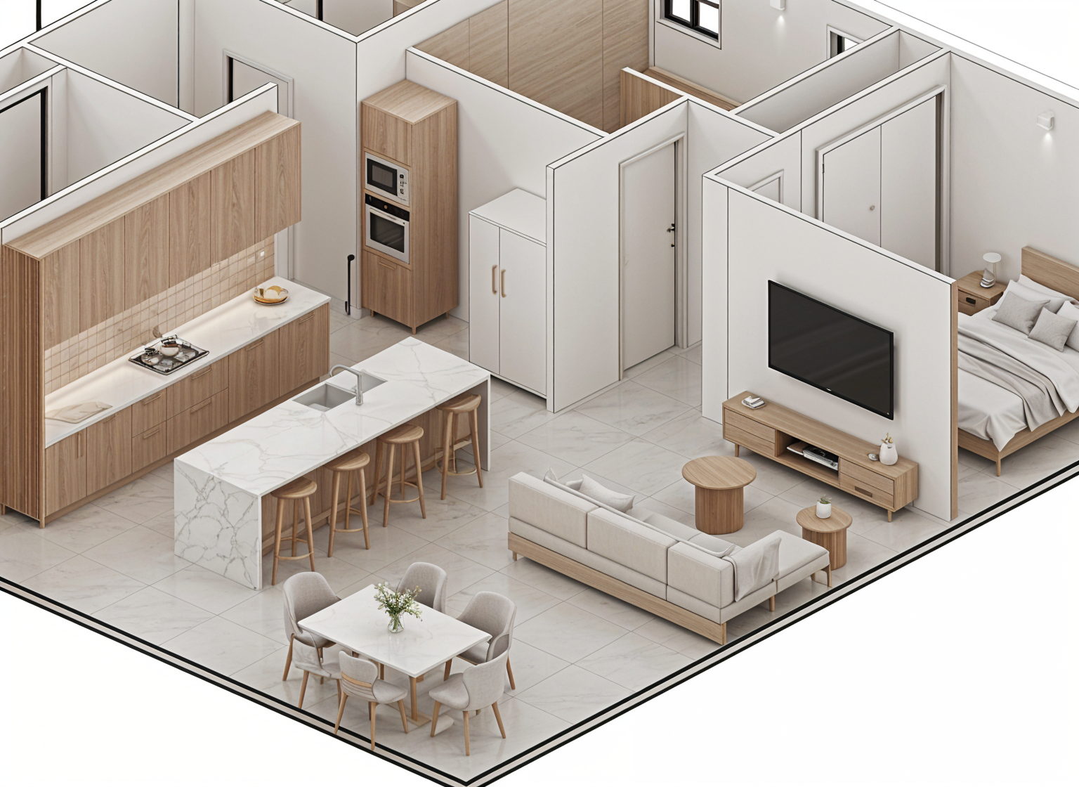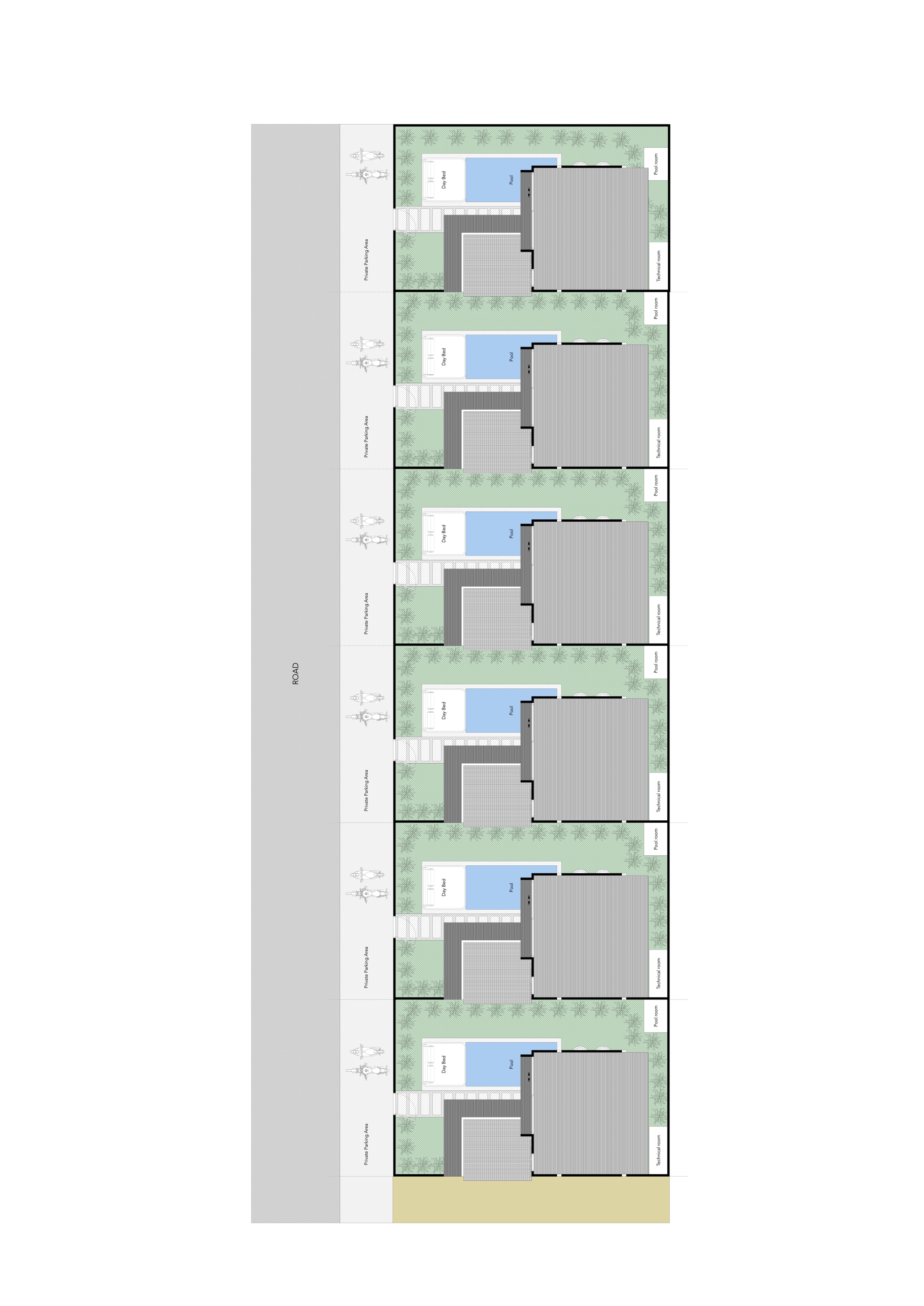 enhance this architectural masterplan top down site plan into a photorealistic masterplan render while strictly preserving the original drawing the result should look like a high end real estate masterplan used in luxury development brochures with realistic materials vegetation and subtle shadows while remaining a top down architectural plan view view style very important this must remain a top down masterplan site plan view do not convert the image into a perspective render or aerial perspective maintain the architectural masterplan style not a 3d scene only enhance materials vegetation textures shadows and realism the final image should look like a photorealistic architectural masterplan used in professional real estate presentations layout lock extremely important do not modify the site layout in any way do not move buildings roads parking landscaping or boundaries do not flip mirror rotate or reinterpret the plan all proportions and positions must remain exactly the same the masterplan geometry must stay 100 identical to the original drawing buildings all villa roofs should be rendered in dark grey metal sheet roofing roofs should have clean architectural shading and subtle highlights to create realism do not change the shape size or orientation of any building road and parking a road borders the plot and should be rendered with a realistic asphalt texture parking areas should appear along the road with subtle pavement texture and clean markings if present road edges can include soft shadows and subtle curb definition technical area the technical area must be clearly visible and rendered in brown tones the brown surface can resemble compacted earth gravel or service flooring keep the exact size and location as shown in the plan landscape add tropical vegetation and landscaping around the villas and along the plot edges use natural tropical plants palms and green textures while keeping the plan readable vegetation should enhance the masterplan without hiding the architecture realism use soft shadows and realistic materials to create depth maintain clear architectural readability of all elements colors should remain natural and balanced consistent with a professional real estate presentation goal create a photorealistic architectural masterplan while preserving the exact original site layout no layout changes no building movement no geometry modification no perspective rendering only visual realism improvements to materials roads roofs and landscaping