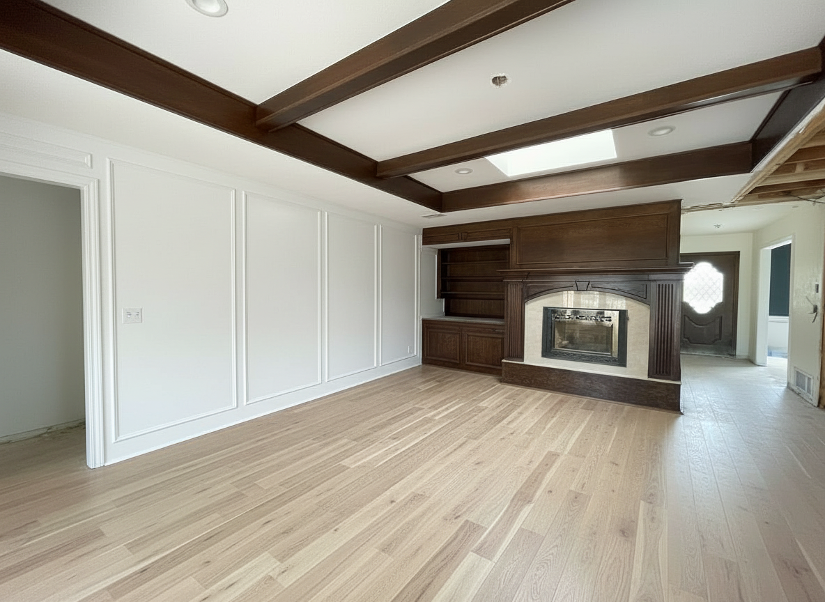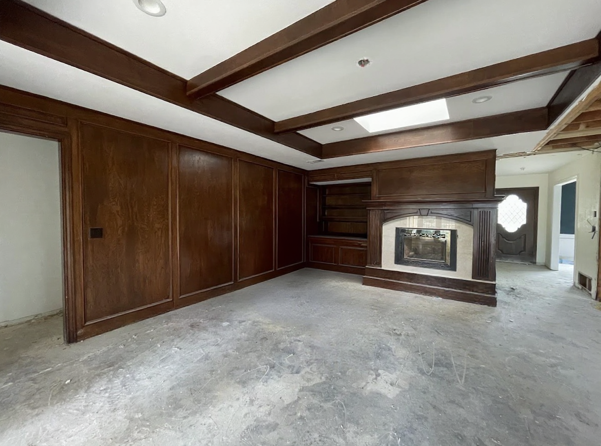 paint white the wooden cladding above fireplace but not the cladding around the fireplace