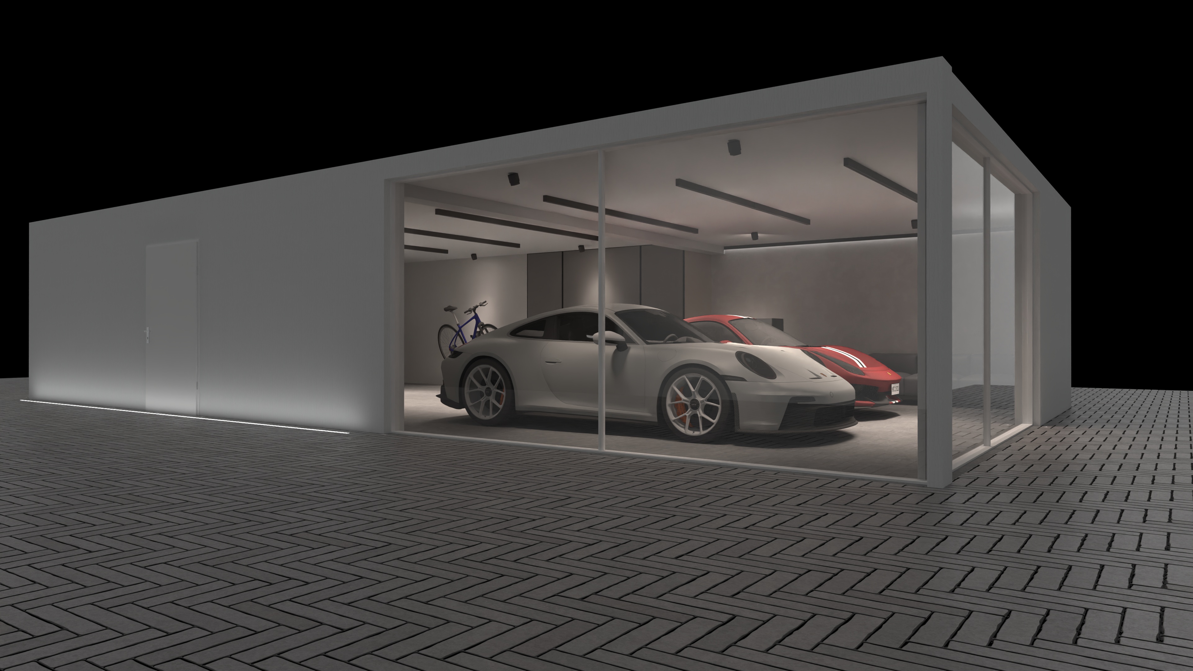 don t add or remove something there ist a wall at the right side behind teh garage green plants in front of teh wall remove the reflektions of teh ceiling an lights from the windows in the back do not remove die both led lines in the front do not remove the both wall lamps in the back