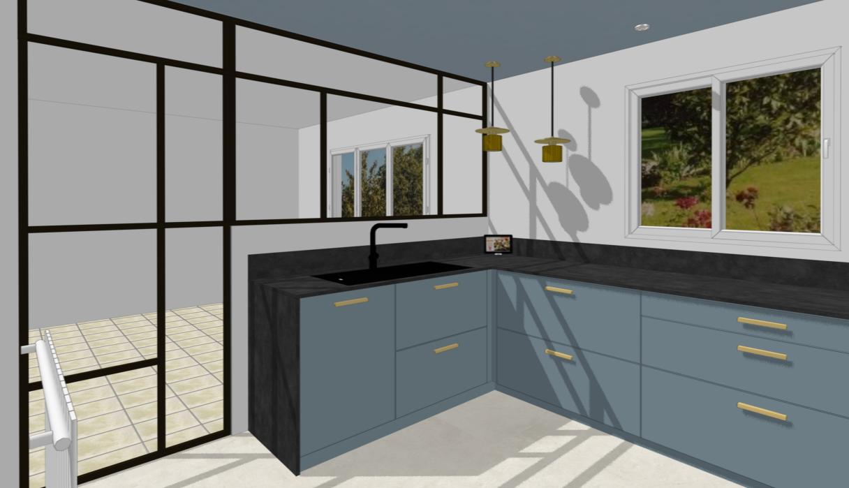 ajoute quelques d corations vaisselle conserve les couleurs mat riaux et textures conserve la partie de plafond bleu et ne mets rien dans la pi ce du fond